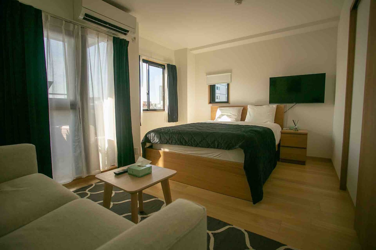 This is a 1LDK, 41㎡ apartment-style vacation rental designed entirely from scratch by an interior coordinator. There are multiple units within the same building. It’s a 7-minute walk to Nankai & Osaka Metro Tengachaya Station. From there, it’s just 2 stops (5 minutes) by Nankai Line to Namba Station, and a direct 35-minute ride to Kansai International Airport with no transfers. ◆Features: Stress-free self-check-in system Japanese, English, and Chinese language support High-speed Wi-Fi available