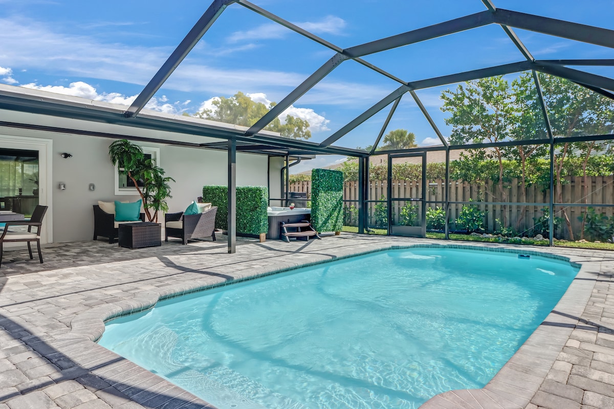 Anda akan jatuh cinta dengan tempat yang lapang namun ajaib ini di pusat kota Naples, konsep terbuka modern, finishing high end, banyak cahaya, tempat tidur queen 2 BR, blinens halus, kamar mandi lengkap dengan marmer, kolam renang tertutup, halaman belakang yang luas dan lubang api kayu bakar, 2 tempat parkir hanya beberapa langkah dari pintu depan Anda. Tempat ini dekat dengan semua yang ditawarkan Naples, pantai - pantai indah, tempat makan & kehidupan malam, hanya berjarak 3 km dari pantai, 3 km dari 5th ave di Old Naples dan kurang dari satu mil dari pusat perbelanjaan.