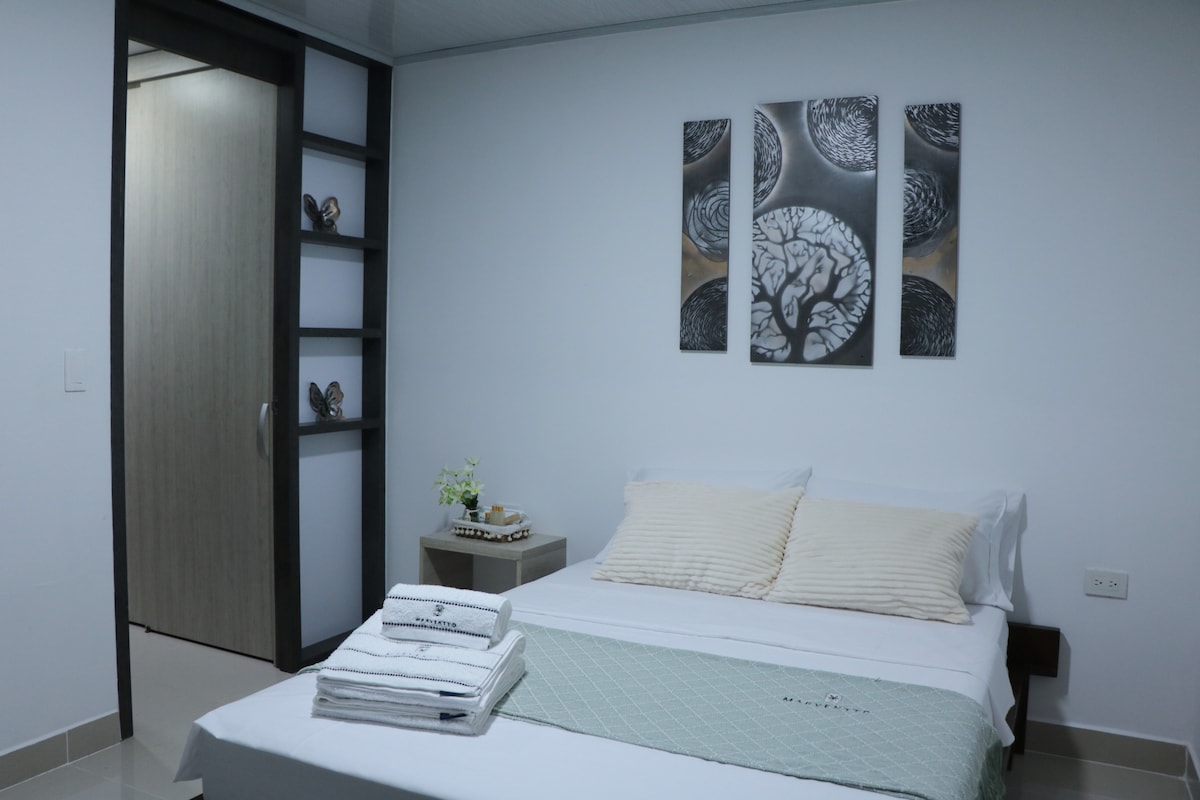 Kamar baru yang membangkitkan kenyamanan rumah, cocok untuk mereka yang bepergian untuk bekerja dan turis. Tempat ini memiliki AC, kamar mandi pribadi, minibar, ruang kerja, area penyimpanan, dan TV. Lokasinya di Marventto, rumah tamu yang tenang dan aman di pusat kota Tumaco. Area strategis ini memiliki akses yang sangat baik ke layanan transportasi. HANYA MENERIMA MAKSIMAL 2 TAMU, TANPA PENGUNJUNG. DILARANG MEMBAWA HEWAN PELIHARAAN::