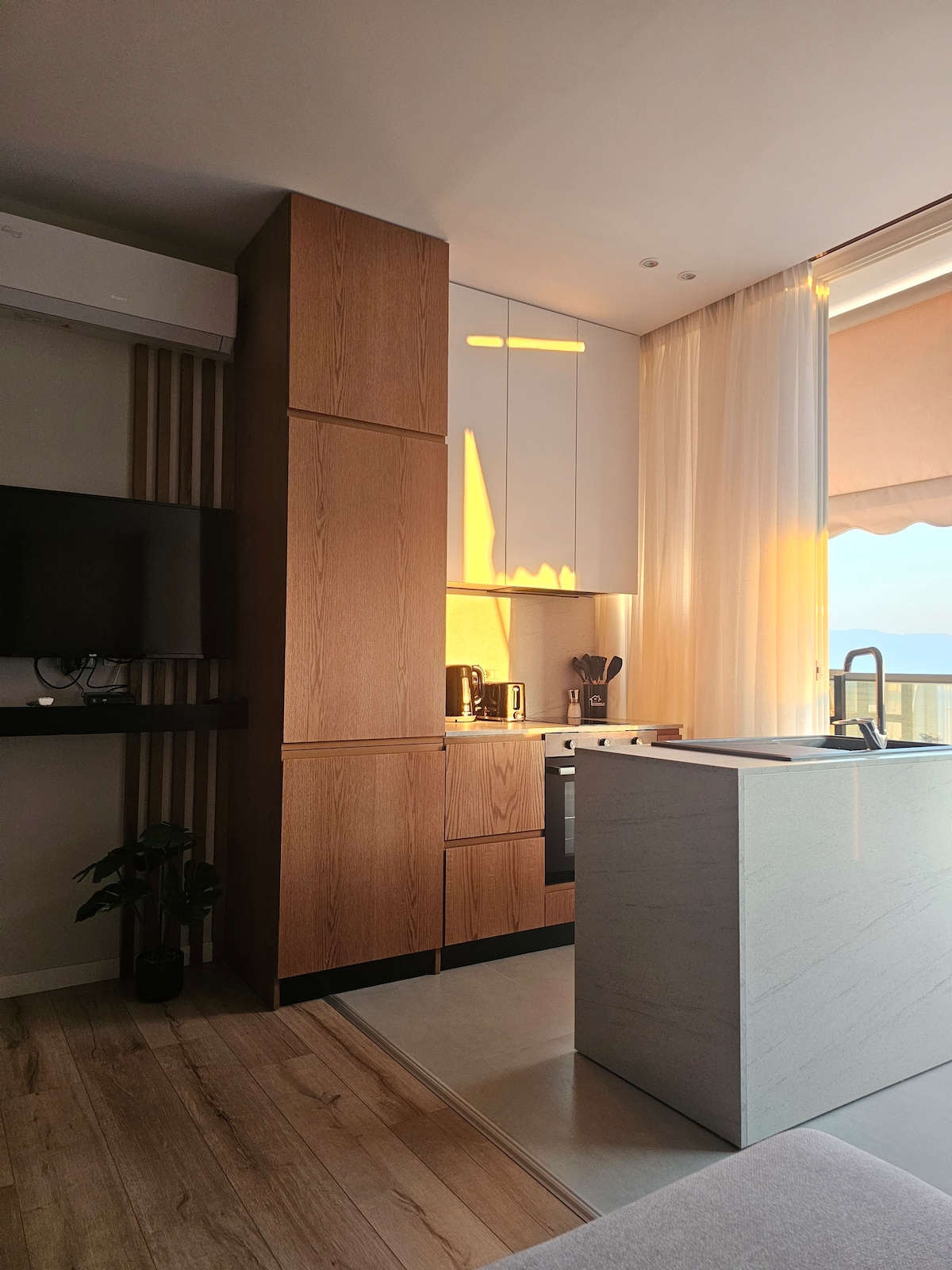 Selamat datang di Estelviano Sea View Escape, tempat liburan pantai modern di pusat Vlore. Cocok untuk pasangan, wisatawan solo, atau tamu bisnis yang mencari liburan pantai yang elegan. ✔️ Pemandangan laut yang menakjubkan Interior ✔️ elegan dengan aksen kayu alami ✔️ Suasana damai untuk relaksasi sejati Hanya 5 menit dari pantai, restoran, dan toko – liburan sempurna Anda dimulai di sini.