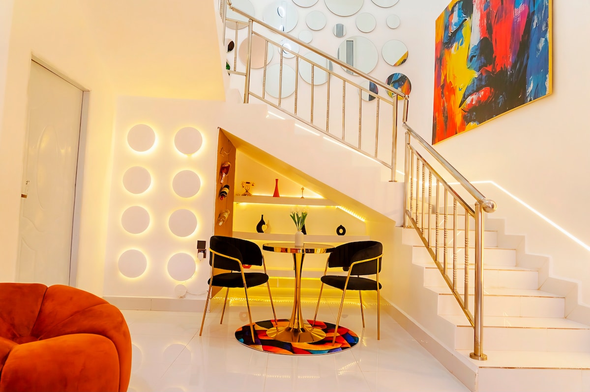 Unique and stylish 3 bedroom duplex in Abuja with 2 spacious living rooms, cozy modern interiors, a massage chair, PS5, Smart TVs with DSTV, and fast Wi-Fi. Located in a secure gated neighborhood, minutes from the Presidential Villa, National Assembly, National Secretariat, and less than 5 mins to Wuse II & Maitama, perfect for families, business travelers, and short or long stays.