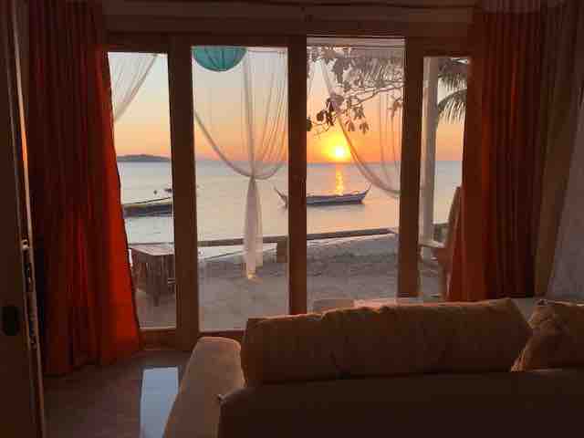View View View!!! Magnificent Beach Front view.. Meskipun ini lebih seperti studio (SANGAT KECIL )dengan Furniture Baru sofa bed SAJA !! area duduk. Max 2 orang TEBAK di KAMAR. Namun pemandangan terbaik dari semua kamar yang kami miliki di Vila kami - sejauh ini: "PEMANDANGAN di Halaman Depan Gazebo Patio, Tirai privasi yang membelah Suite yang bersebelahan. atau Anda bisa menggabungkan kedua Suite untuk tebakan atau pax yang lebih panjang ( lihat kamar kami yang lain Villa 2 Atau kamar 3 -4 5 -6 Pemandangan Matahari Terbenam dan mendengar suara deburan ombak.