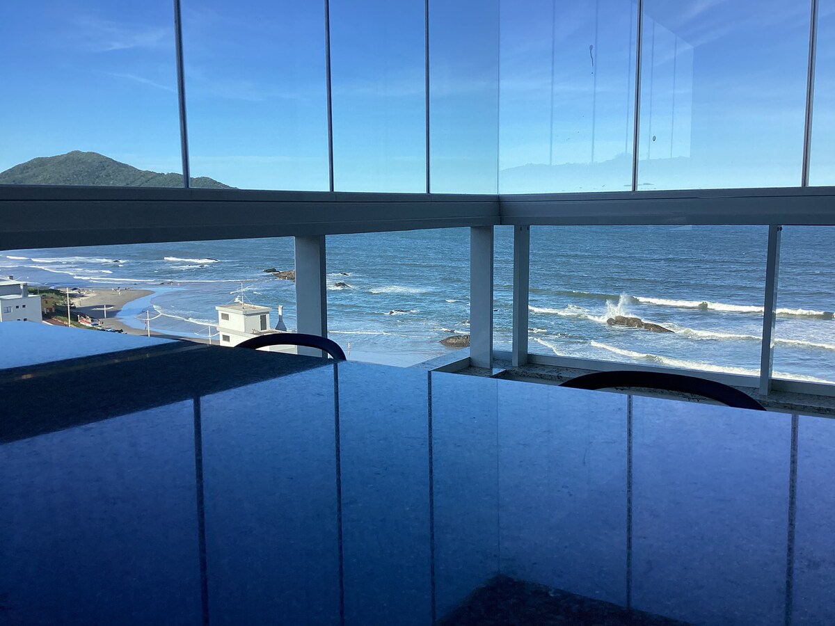 Tempat unik ini memiliki gayanya sendiri. Apartamento baru, di lantai 11, semua kamar menghadap ke laut. Dengan 2 suite yang berjarak 20 meter dari pantai, garasi yang luar biasa di lantai dasar. AC di ruang tamu dan suite, balkon luas dengan pemanggang barbekyu arang yang menghadap ke laut. 10 menit dari bandara internasional Navegantes, 10 menit dari Beto Carrero.