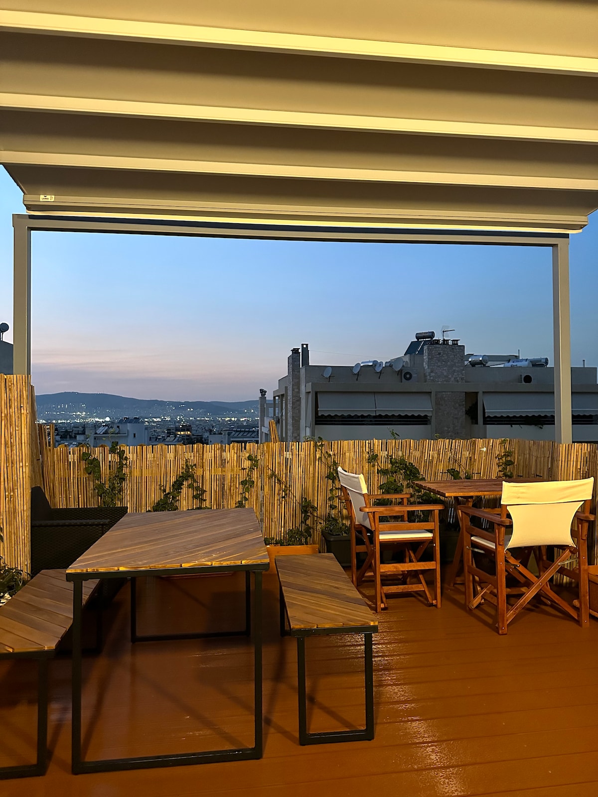 Studio atap yang direnovasi sepenuhnya (20 meter persegi) dengan teras pribadi (25 meter persegi) yang menawarkan pemandangan langsung yang menakjubkan dari kuil Parthenon dan bukit Acropolis. Terletak di lantai 6 (lift ke lantai 5, kemudian tangga) di area Nea Smyrni yang tenang, hanya 400 m dari trem, 200 m dari supermarket 24/7, dan 700 m dari alun-alun pusat. Termasuk AC, dapur kecil, tempat tidur double, kamar mandi bergaya, dan Wi-Fi 200 Mbps. Sangat cocok untuk pasangan atau wisatawan solo yang mencari kenyamanan dan pemandangan menakjubkan.