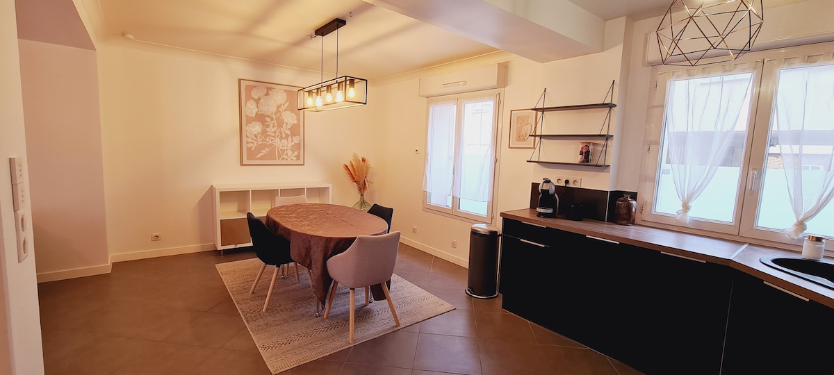 Di tengah - tengah desa Neauphle - le - Château, akomodasi ini damai dan nyaman. Toko berada di pintu keluar tempat tinggal (toko roti, toko kelontong, restoran, tukang daging, apotek...) 2 kamar seluas 47 m2 ini luas dan tenang. Kemungkinan untuk tidur 4 orang berkat kamar tidur dengan tempat tidur ganda besar dan ranjang sofa besar yang nyaman di ruang tamu. Kemungkinan bekerja dari jarak jauh berkat meja besar. Parkir tersedia untuk satu mobil.