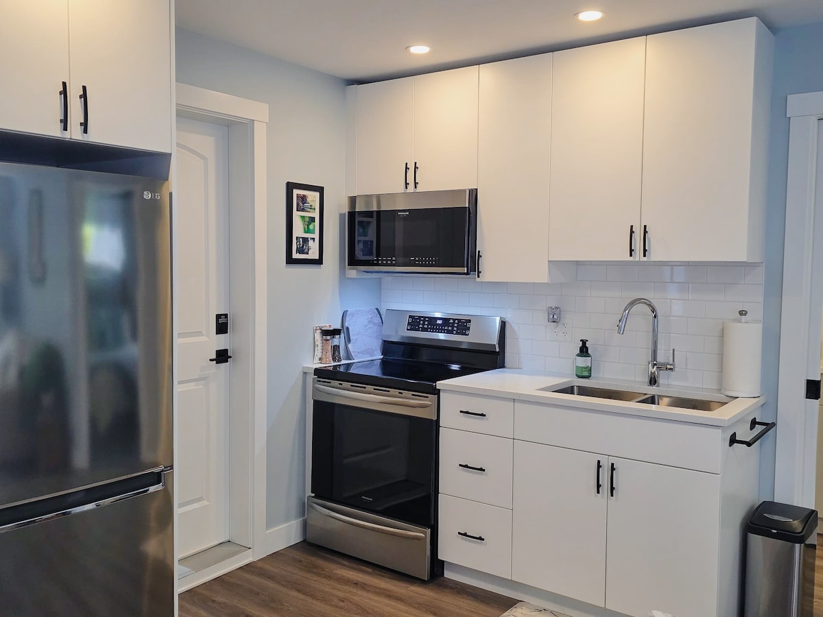 2BR dekat VIU, Trails & Lake | W/D + Dapur