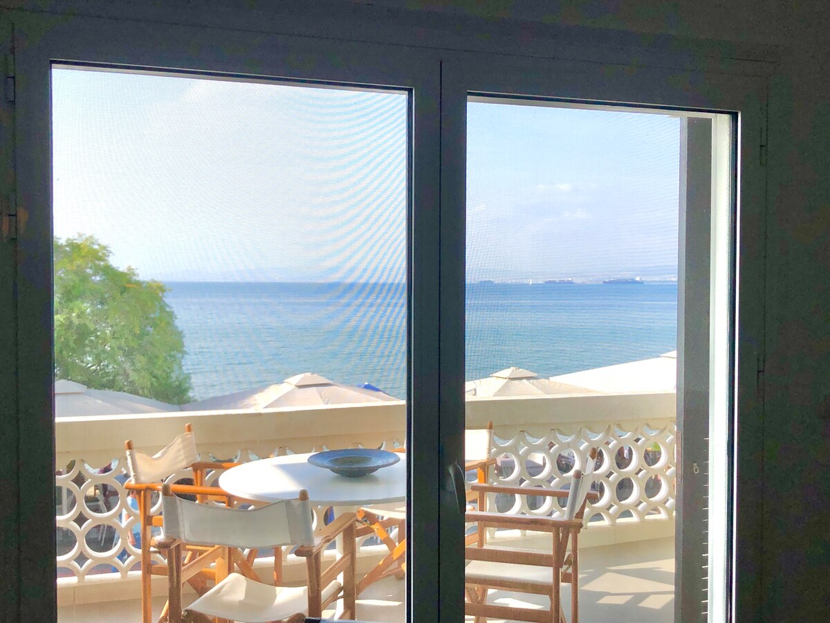 Apartemen nyaman (45 meter persegi) tepat di depan laut di Perea. Direnovasi sepenuhnya pada tahun 2021. Wi-Fi cepat (300 Mbps). Halte bus berjarak 30 meter dan supermarket berjarak 80 meter. Bangun dan nikmati berjalan-jalan di tepi laut dengan bar pantai dan kedai tradisional tepat di depan rumah, sementara taman bermain bisa ditempuh dengan berjalan kaki!! Lokasinya di lantai pertama. Ada perahu dari Perea ke Thessaloniki. Bandara berjarak 15 km dan Thessaloniki berjarak 25 km. Mobil tersedia sesuai dengan permintaan!