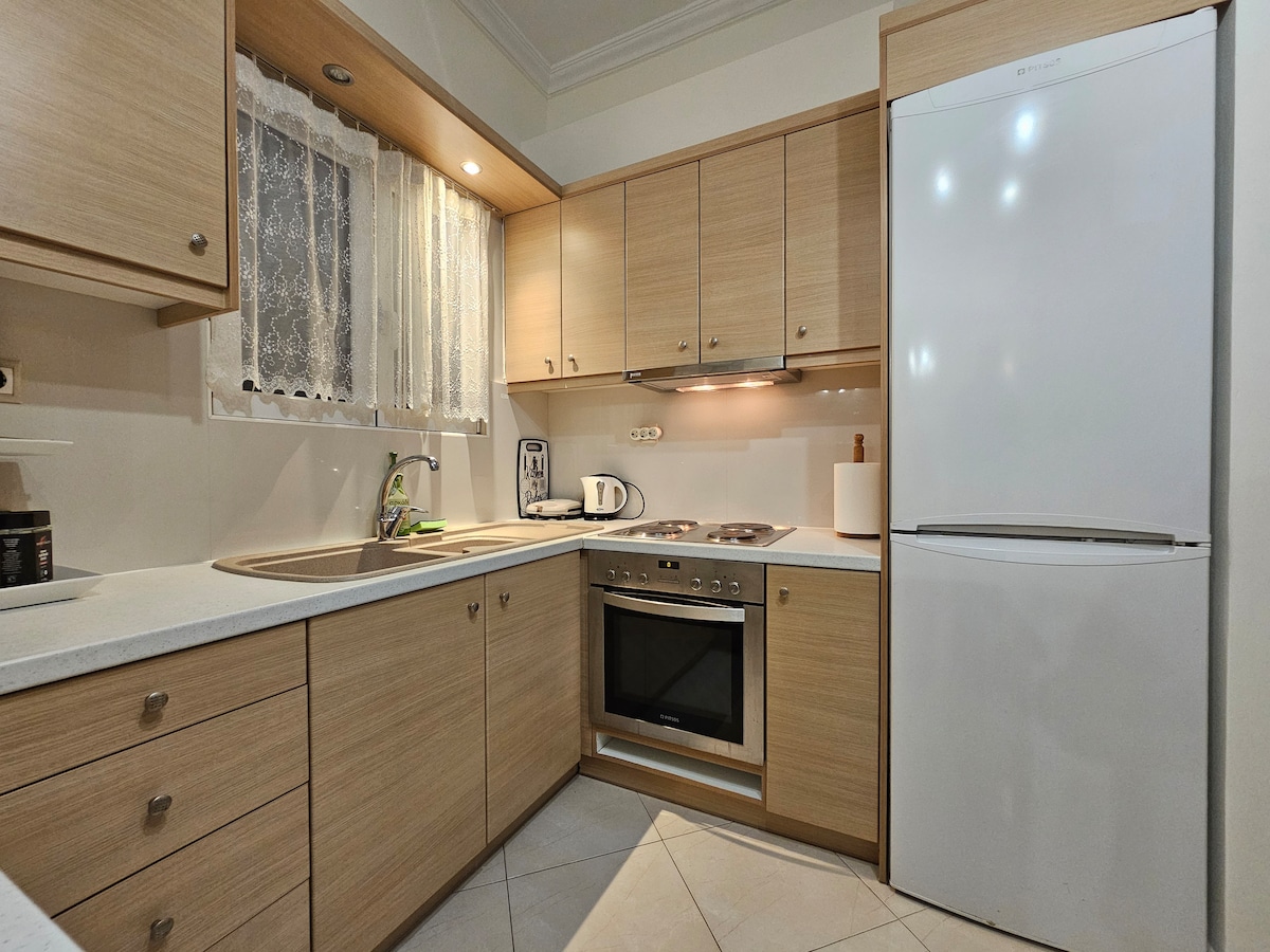 Modern 🎨 Cozy 25 sq.m. ground floor flat🌼Fully brand new equipment ✔️Beautiful⚜️. Veranda🌷 . Bersih. WiFi. TV PINTAR. A/C. Tram🚈 Bus/NightBus🚌 24/7 SuperMarket. Tenang. Lingkungan yang aman ☕Bar👌 Kopi🍺 Restoran 🍽️ Cinema📽️ Onassis Cultural Center. 🌳Taman. Transfer✈🚘 Bandara (biaya tambahan)🏠 Apartemen yang indah dan telah direnovasi,dengan semua fasilitas. Pusat dengan banyak transportasi, dekat dengan Pusat Budaya Onassis. Layanan antar jemput bandara dimungkinkan (biaya tambahan).