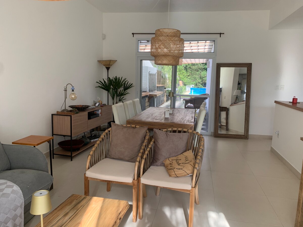 Rumah modern dan super fungsional. Untuk menikmati sebagai keluarga. Ruang tamu besar dengan dapur semi - terintegrasi. Lampiran grillero beratap ke ruang makan, menghadap ke bawah dengan kolam renang clammatic dan berpagar. Galeri beratap samping menghadap taman dengan kompor dan quincho beratap dengan meja dan bangku pedesaan. Ada garasi tertutup. Taman berpagar lengkap dengan gerbang otomatis. Dan bahkan hutan kecilnya sendiri! 3 kamar tidur dan 2 kamar mandi (kamar tidur utama en suite dengan lemari walk - in).