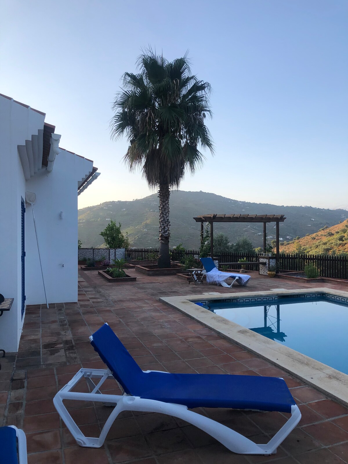 Di pedalaman yang indah adalah finca kami. Tempat ini terletak di atas desa pegunungan putih Cómpeta di properti seluas 2000 meter persegi dengan pohon zaitun tua, rempah - rempah harum, dan anggrek liar. Tempat ini menawarkan pemandangan pegunungan di sekitarnya yang luar biasa, lembah subur ke Mediterania. Pada hari - hari yang cerah, bebatuan Gibraltar dapat dilihat, dan di cakrawala, Pegunungan Rif Afrika muncul. Jalanan Cómpeta yang indah bisa ditempuh dengan berjalan kaki dalam 15 menit.