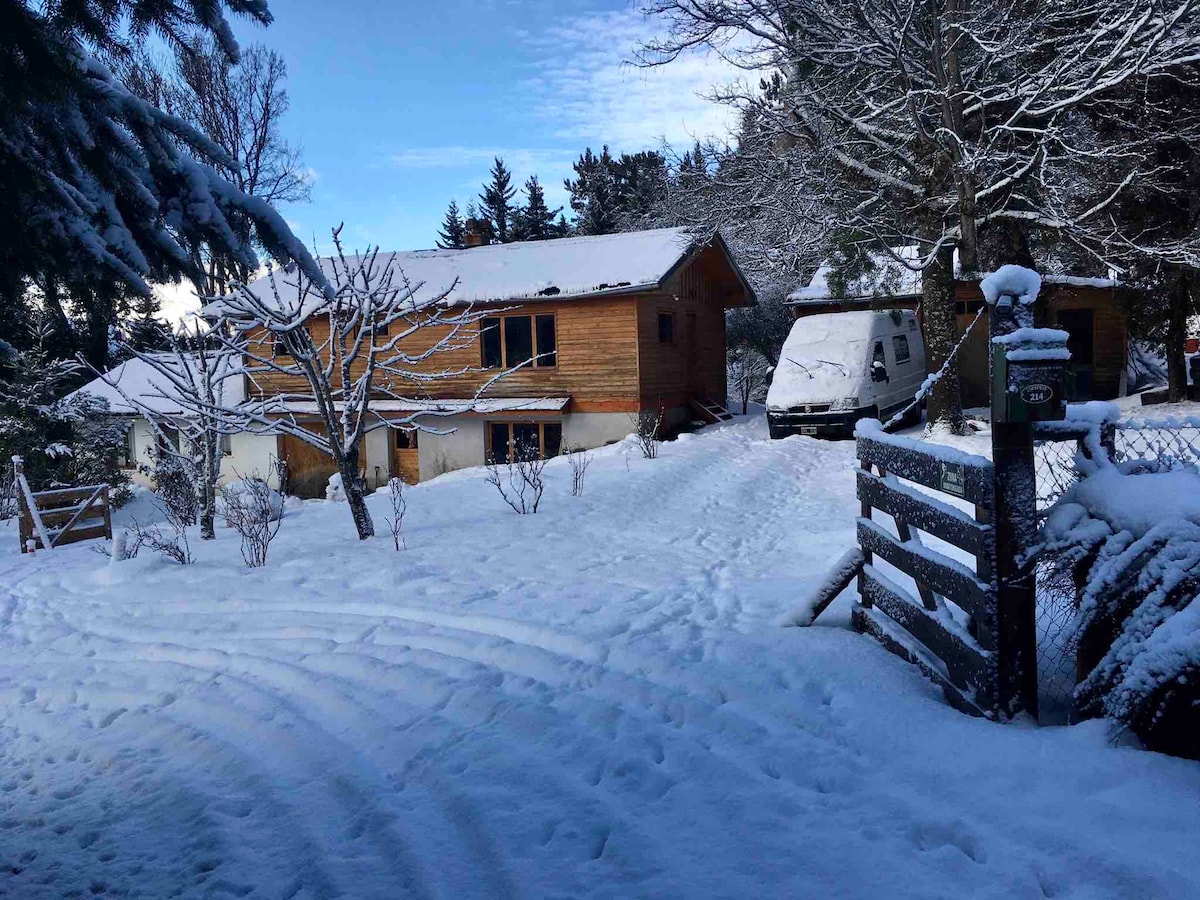 Rumah nyaman yang terletak di lahan unik dengan pantai, di dalam Cagar Alam Perkotaan, di lingkungan alam yang murni dan ketenangan dengan pemandangan laguna, pegunungan, dan hutan yang indah. Tempat ini memiliki dermaga sendiri dengan kayak. Terletak di Circuito Chico, 18 km dari pusat Bariloche, 20 dari Cerro Catedral dan beberapa menit dari jalan setapak dan pantai, dekat dengan restoran dan 1,5 km dari supermarket. Kabin lain untuk dua orang disewakan di dalam properti.