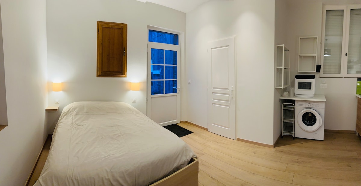 Bersantai di studio yang tenang dan bergaya ini, menghadap ke tenggara untuk menikmati kebangkitan yang cerah. Rumah baru seluas 24 m2 ini berada di tempat tinggal yang damai dan memiliki tempat parkir bernomor (#220). * 10 menit dari pusat kota Troyes. ✓Sangat cocok untuk momen santai sebagai duo atau solo ✓Dekat UTT ✓Kemudahan akses di dekat jalan pintas dan jalan raya keluar. *Fasilitas: Almari ✓walk - in ✓Piring memasak, Kulkas, Microwave ✓Cafetiére Senseo ✓Seprai & Handuk