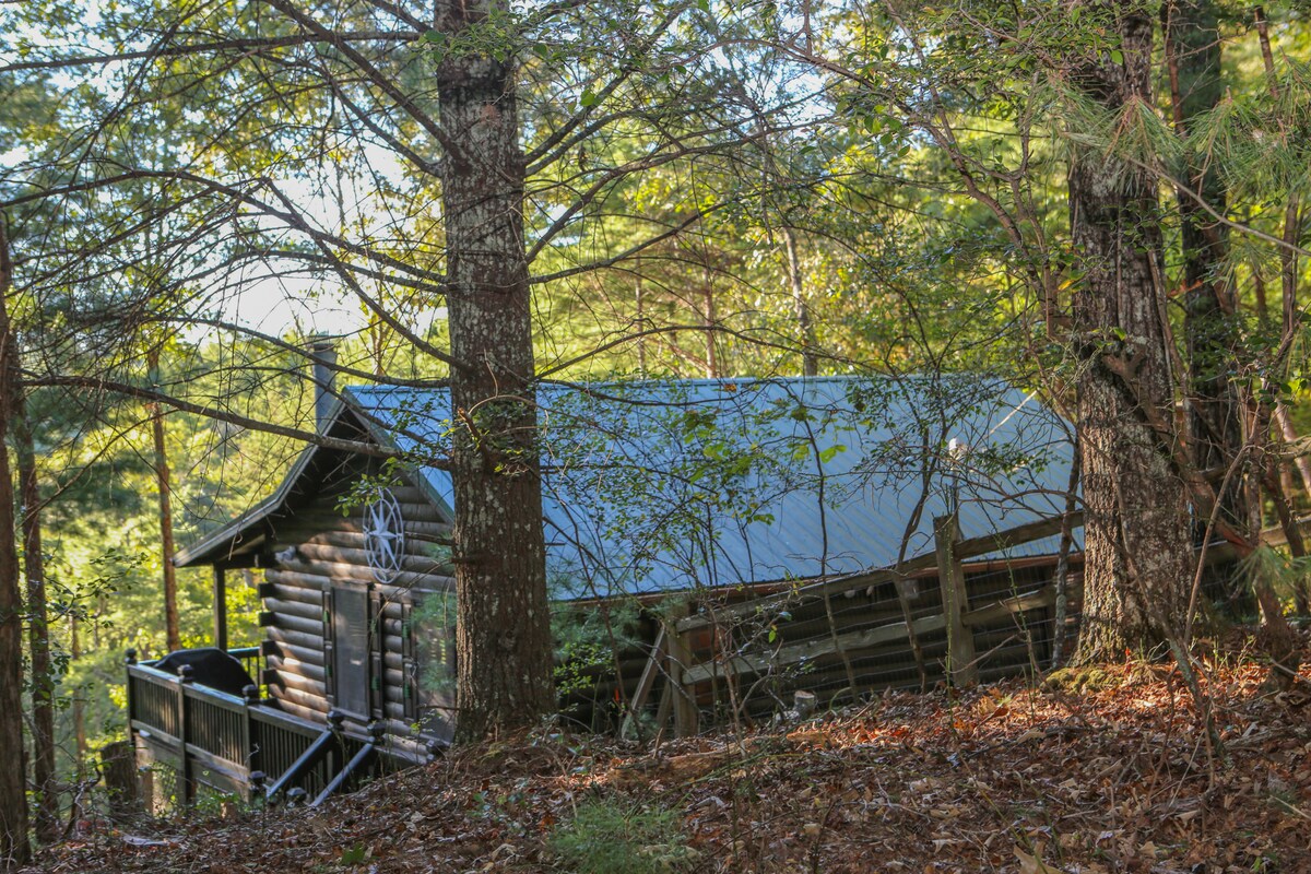 Our Cabin: 'Wandering Bear' is nestled on 3-acres of property, among the beautiful forests of Double Knob Mountain. Perfect for those seeking sunset views and a harmonious blend of nature, with the comforts of home. This romantic retreat invites you to stargaze from the hot-tub on the outdoor deck, or cozy up by the heat of the fire in our newly renovated living area. For those interested in wandering, we are positioned less than 30 minutes from both downtown Ellijay and Blue Ridge.