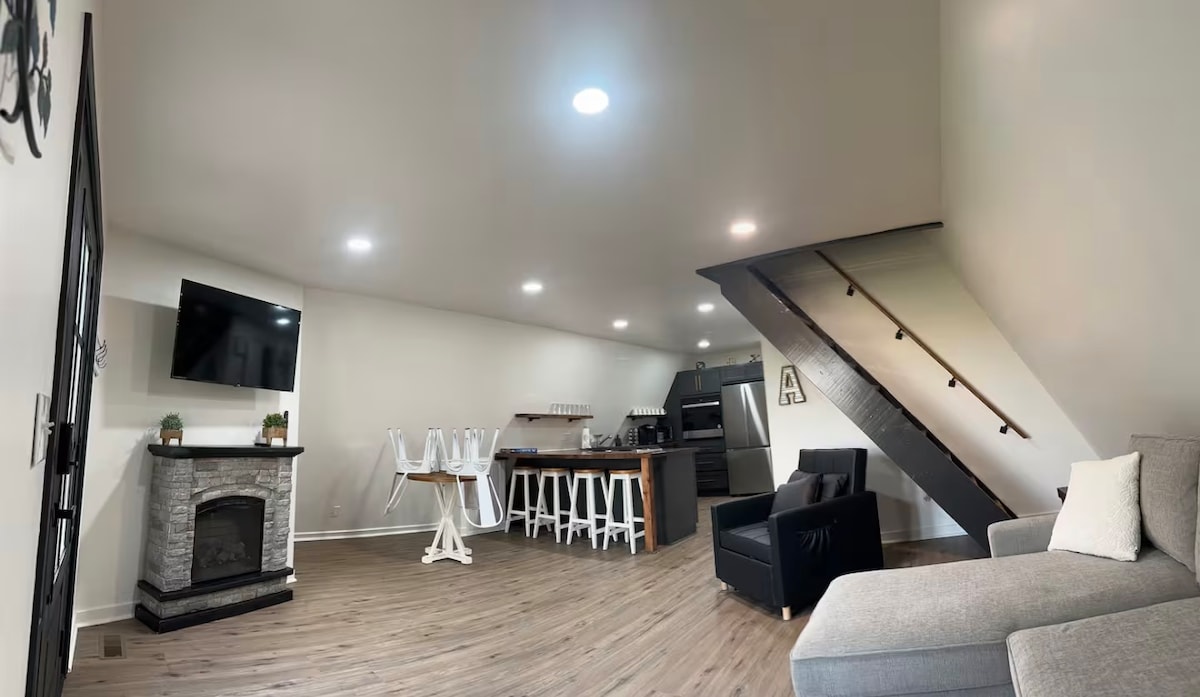 Bawa seluruh keluarga ke tempat luar biasa ini dengan banyak ruang untuk semua orang. Ruang tamu dengan perapian, makan di dapur, ruang makan, 2 kamar tidur dan 2 kamar mandi di lantai utama. Lantai bawah memiliki 3 kamar tidur, 1 kamar mandi, ruang cuci, dan area duduk. Total 5 kamar tidur dengan 3 tempat tidur king, 2 tempat tidur queen, dan futon.