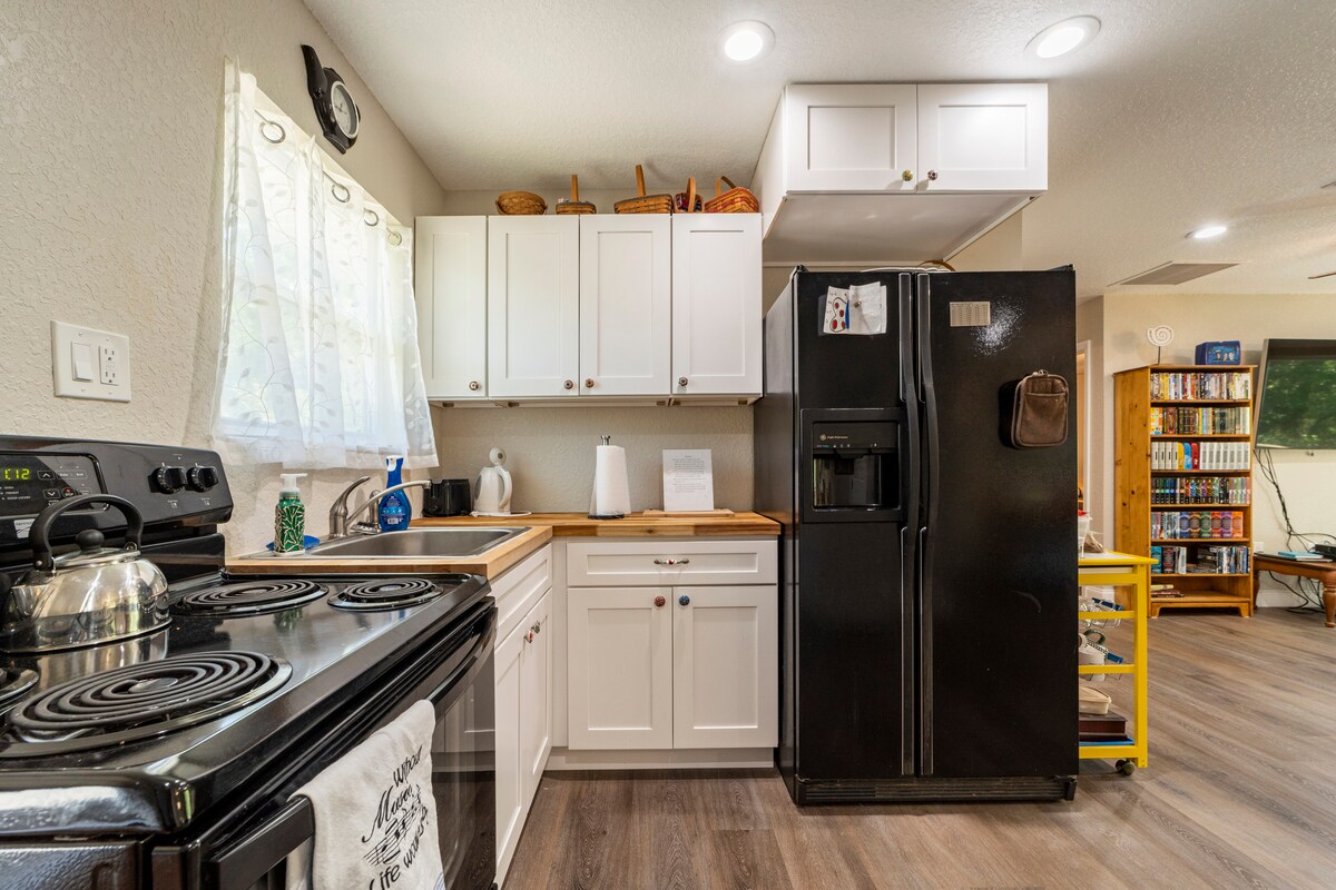BARU DIRENOVASI - Nikmati masa inap Anda di Gainesville di studio modern abad pertengahan ini 0,5 mil dari UF dan 2 mil dari rumah sakit UF dan HCA. Tidak ada detail yang terlewatkan di rumah tamu terpisah yang dirancang dengan indah ini dengan cahaya alami yang berlimpah, finishing mewah, dan fasilitas tanpa akhir - dapur kecil, kulkas/freezer mini, smart TV, dan banyak lagi! Tempat pribadi dan tenang yang berlokasi strategis di pusat Gainesville ini sangat cocok untuk siapa saja yang berkunjung hanya untuk satu malam atau beberapa minggu.