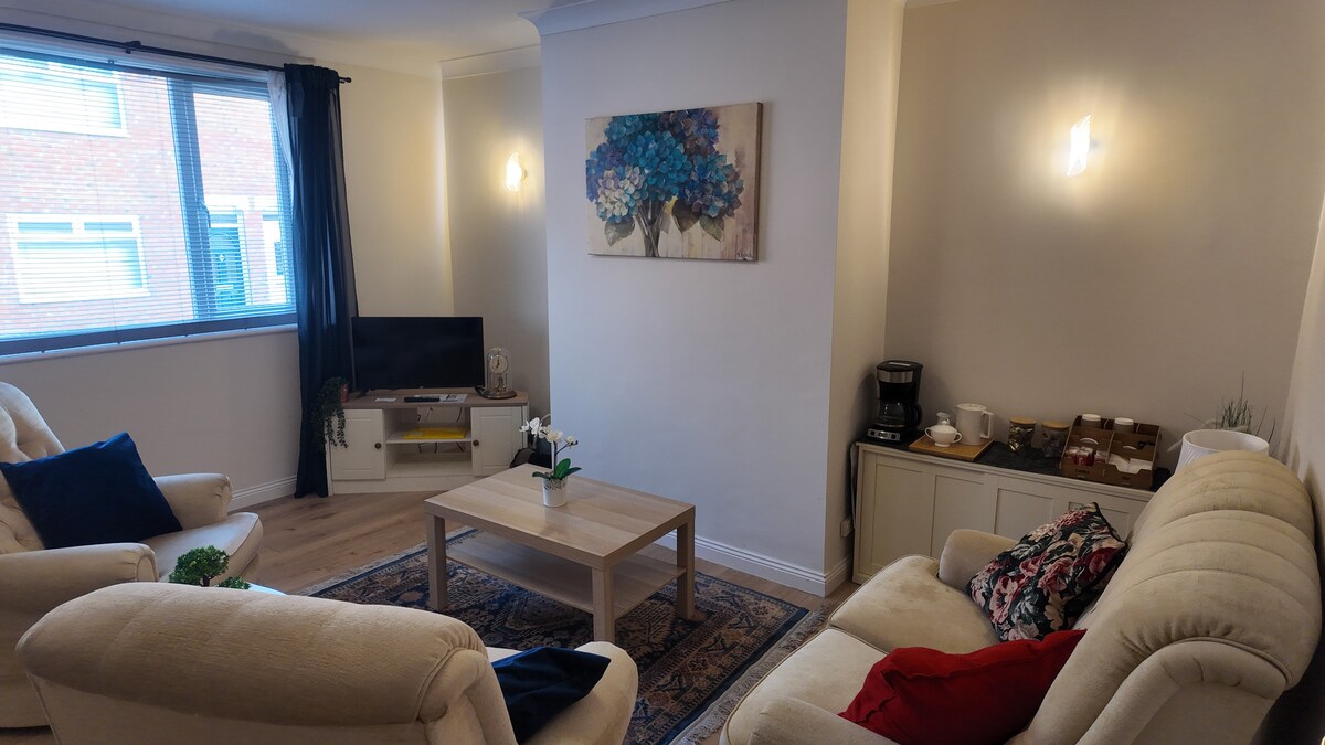 Berlokasi fantastis di pinggiran Newcastle Racecourse. Tempat tinggal yang baru direnovasi, dilayani sepenuhnya, dan rapi ini menanti Anda. Penginapan termasuk: - 2 kamar tidur double dengan lemari pakaian yang pas - Kamar mandi lengkap ke lantai satu - Pisahkan dengan lantai dasar - Dapur terintegrasi lengkap (freezer kulkas, mesin cuci, dan bar kopi lengkap) - Parkir aman di jalan, dengan parkir di jalan yang luas - Area taman berumput terpisah - Dinding media dengan TV 60”( Netflix, ITVX, dll.) Tidak membawa binatang peliharaan.