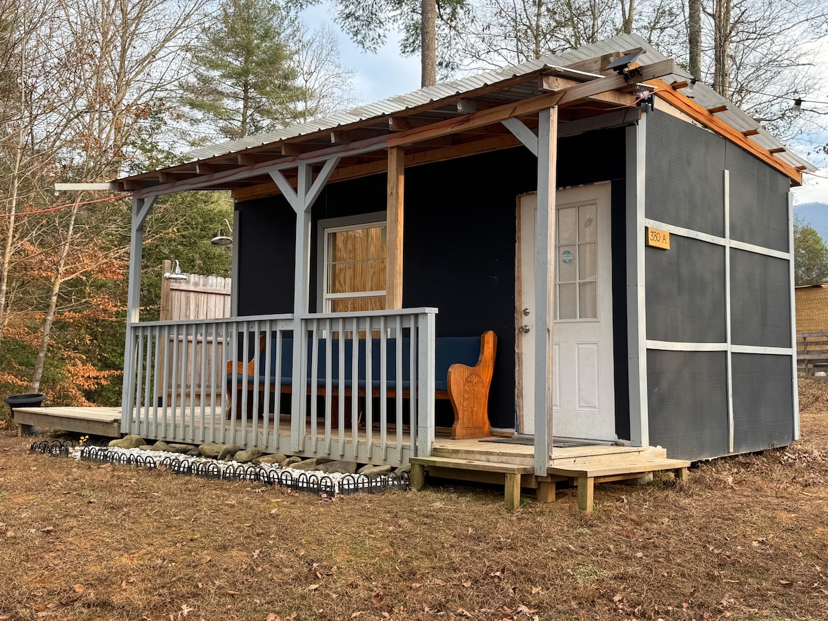 The LeConte Tiny Home menghadap Sungai Pigeon