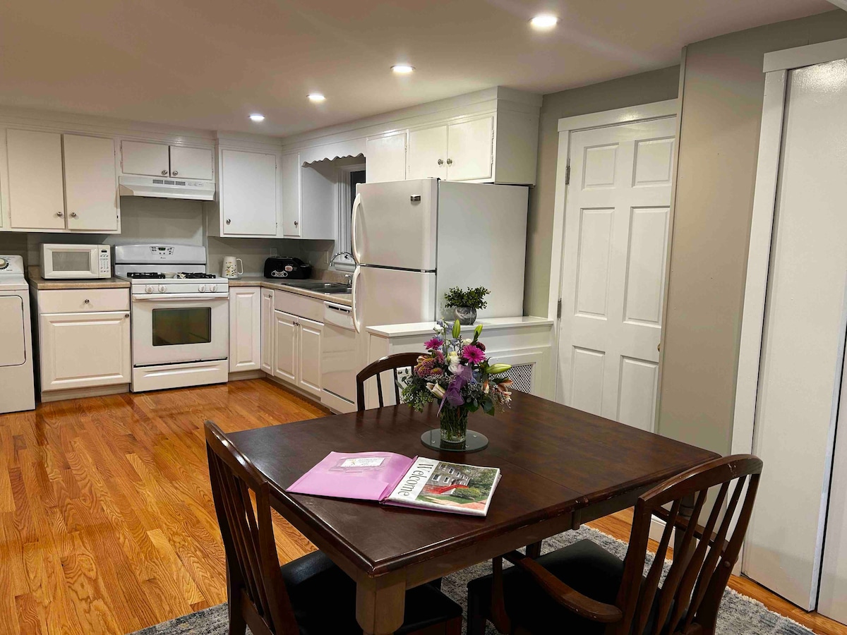 Keluarga Anda akan dekat dengan segalanya bila Anda menginap di tempat liburan Antique New England yang berlokasi di pusat kota ini. Baru saja direnovasi, namun sangat orisinal. Semua yang Anda butuhkan bisa ditempuh dengan berjalan kaki; berbelanja, toko kelontong, bersantap, danau, berkendara singkat/berkendara ke pantai. Tempat ini berukuran sekitar 900 kaki persegi; 1 kamar mandi, kamar tidur king, kamar tidur queen, sofa queen pull - out, dan kamar tambahan di mana tempat tidur twin dapat diletakkan (atas permintaan). Tempat ini akan menampung 4 orang dewasa dengan nyaman, namun akan menampung hingga 7 orang.