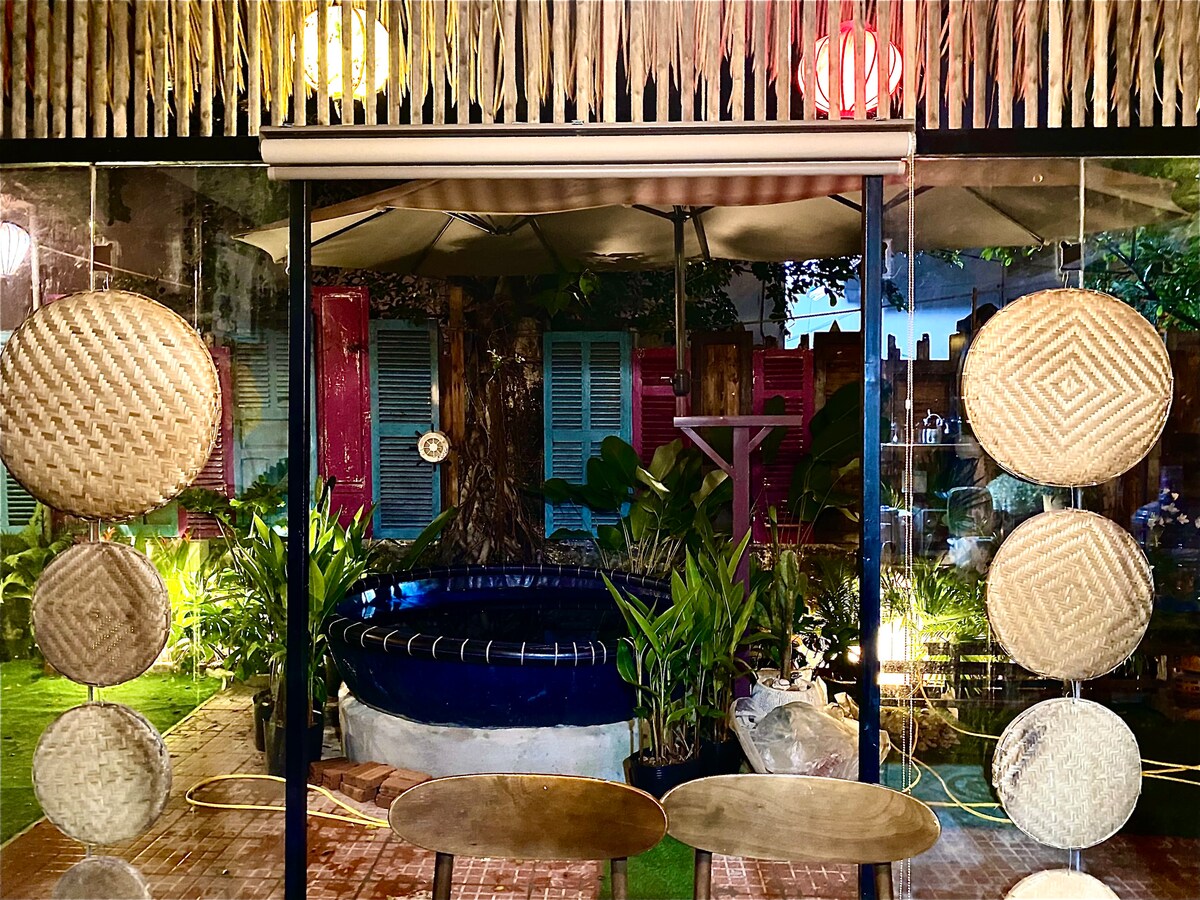 Rumah Pomelo yang indah ini menawarkan kamar yang luas dengan nuansa nostalgia namun menawan. Damai adalah saat Anda duduk di jacuzzi luar ruangan kami, atau menikmati sarapan/mandi di bawah sinar matahari sambil melihat ke atas taman yang rimbun yang dipenuhi bunga & sayuran organik. Ciptakan kenangan tak terlupakan bersama orang - orang terkasih yang membuat pesta BBQ di bawah bulan dan lampu berbintang! Bosan di dalam? Pantai Khe saya berjarak 3 menit berjalan kaki dengan pasir putih halus dan ombak berselancar keriting. Toko dan restoran hanya berjarak satu blok.