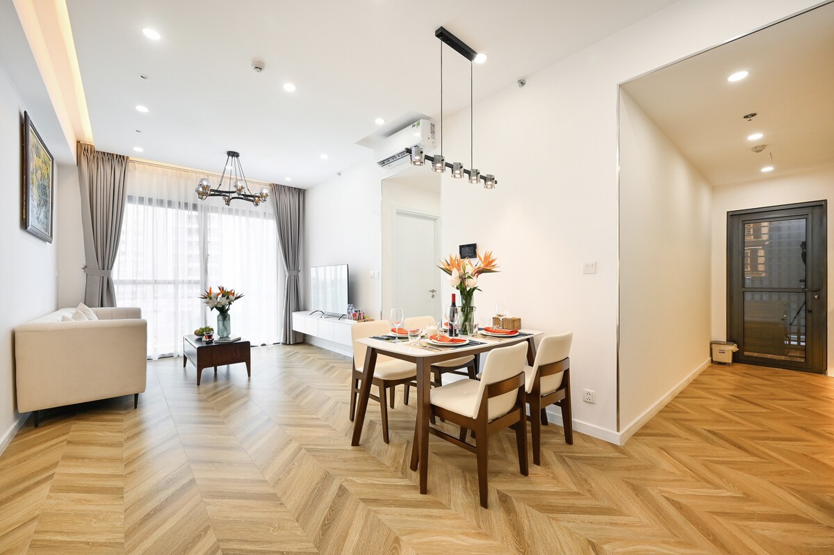 Selamat datang di The Horizon – Apartemen 1BR yang Nyaman di dekat Crescent Lake - Bergaya: 1 kamar tidur yang luas dengan tempat tidur berukuran queen. - Fasilitas lengkap: kamar mandi pribadi, handuk, dapur, mesin cuci, AC & Wi-Fi. - Kenyamanan: Ruang tamu dengan sofa & TV. - Kemudahan: parkir gratis, akses lift, Grab/taksi. - Lokasi Utama: hanya beberapa langkah ke Crescent Mall & Hồ Bán Nguyệt, 15 -20 menit berkendara ke Distrik. - Gaya hidup: nikmati berjalan-jalan di tepi danau, bersantap di restoran internasional terdekat, atau menikmati kopi di kafe bergaya