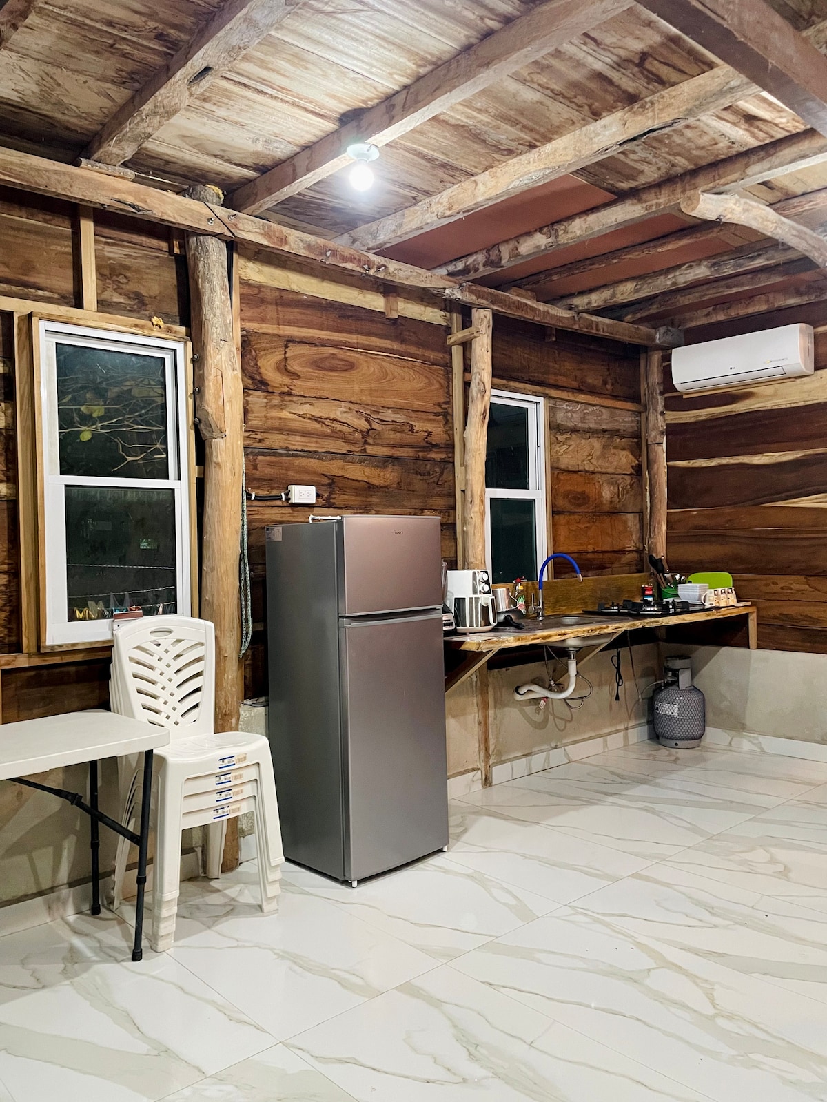 Kabin pribadi di Las Coloradas, berjalan kaki sebentar ke pantai dan dekat ke Aguas Rosas dan Taman Wisata yang terkenal. Ideal untuk beristirahat dan terhubung dengan alam dalam suasana yang tenang dan autentik. Tempat ini dilengkapi tempat tidur king, AC, WiFi, dapur lengkap, kamar mandi lengkap dan setengah kamar mandi, ruang untuk tempat tidur gantung tradisional untuk bersantai.