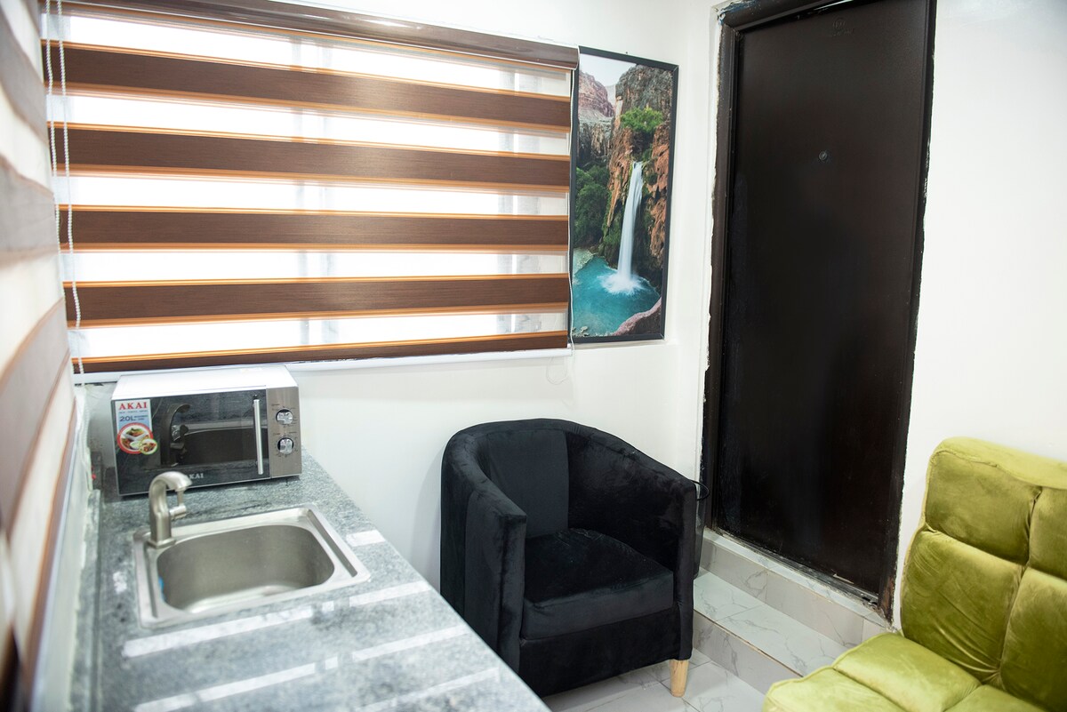 Apartemen yang indah dan berperabot apik, cocok untuk masa inap jangka pendek dan panjang Anda, berlokasi strategis di Estate terbaik di Ibu Kota Nigeria - Abuja, di sepanjang Jalan Bandara, arteri utama yang menghubungkan perkebunan ke jantung kota dan Bandara Internasional Nnamdi Azikiwe. Lokasi utama ini memastikan bahwa penghuni tidak pernah terlalu jauh dari layanan penting, kawasan bisnis, dan pusat hiburan.