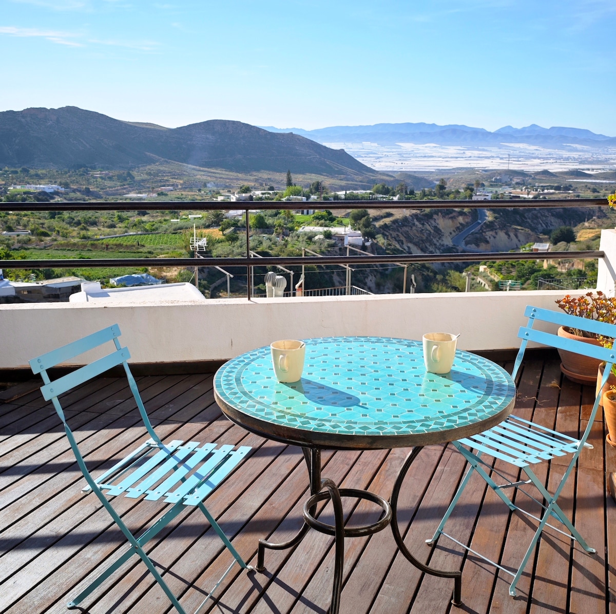 Rumah menawan di Níjar: Terletak di lereng Atalaya de Níjar yang tenang, rumah tradisional yang telah dipugar ini adalah tempat ideal untuk menikmati cahaya dan ketenangan Almeria. Dua terasnya, cerah sepanjang tahun, menawarkan pemandangan panorama pegunungan, desa dan, di kejauhan, Cabo de Gata dan Mediterania yang megah. Di bagian belakang, teras taman teduh yang nyaman menyediakan sudut yang sempurna untuk bersantai di jam - jam terpanas.