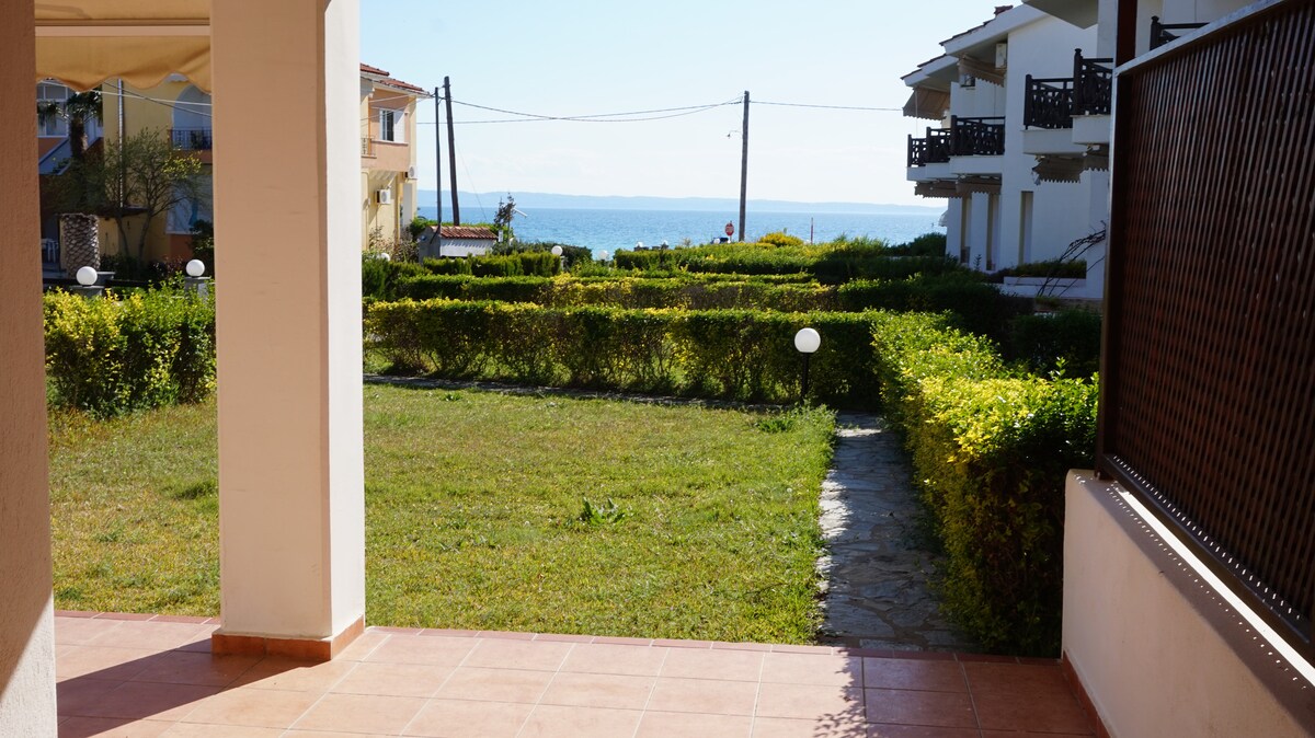 Apartemen besar yang memiliki satu kamar tidur terpisah dengan tempat tidur double dan ruang tamu dengan sofa bed yang menjadi satu tempat tidur double. Dapur lengkap. Wi - Fi gratis, furnitur luar ruangan. Buka ke teras pribadi dengan pemandangan panorama ke laut Sithonian.