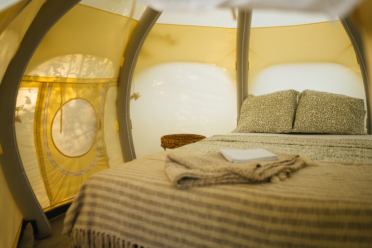 Nikmati kemah mewah di Sungai Zeta, Montenegro! Menginap di kubah 50 m² yang menakjubkan dengan AC, tempat tidur double yang nyaman, loteng dengan 2 tempat tidur single, kamar mandi modern, sudut kopi, minibar, dan pemandangan sungai panoramik. Di luar menanti oasis pribadi Anda: dermaga dengan kayak, kolam renang, tempat tidur gantung, jaring bola voli, trampolin, lubang api, dapur luar ruangan dengan pemanggang, dan tempat parkir. Cocok untuk pasangan, keluarga, atau teman yang menginginkan alam, kenyamanan, dan ketenangan.