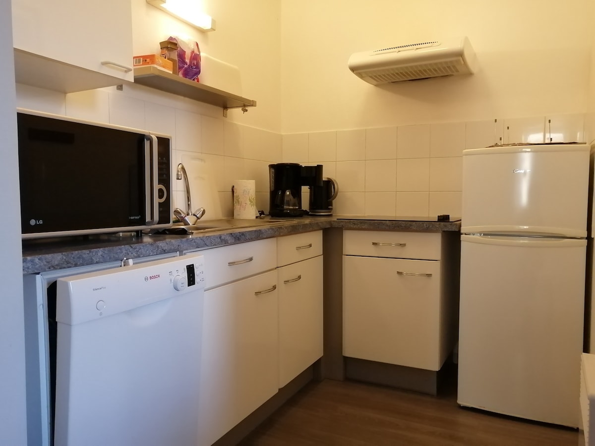 Di hunian yang sangat tenang, dupleks 39 m2 yang bagus, sepenuhnya direnovasi dengan tempat tidur Queen Size, perabot baru, peringkat bintang 2. 2 tempat parkir gratis yang besar, pintu masuk digicode, lift, ruang sepeda, wifi fiber optic, pengawasan video di area bersama. Kamar utama dengan tempat tidur sofa 160 cm, kasur 17 cm, TV, meja makan. Di mezzanine terdapat tempat tidur 160 cm, kasur 25 cm, lemari pakaian, dan area meja. Dapur yang sangat lengkap, mesin cuci, kulkas/freezer besar.