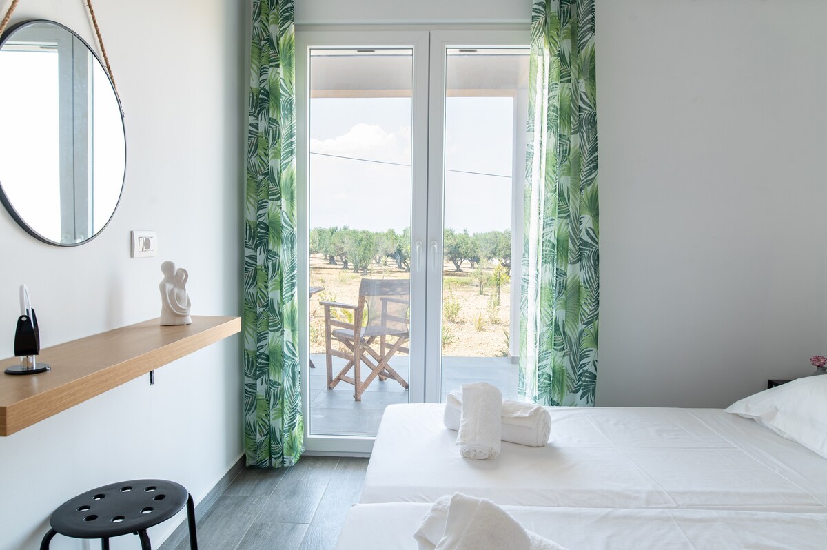 Apartemen tepi laut satu lantai dengan dua kamar yang menghadap ke birunya Laut Aegea yang luas. Apartemen ini terletak di ujung timur desa yang lebih tenang dan menikmati matahari terbit yang unik dan suasana senja yang indah. Akomodasi ini sepenuhnya mandiri dan fungsional dan memiliki semua kenyamanan dasar serta estetika khusus untuk membuat masa inap Anda unik dan tak terlupakan.