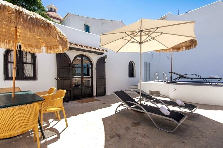 Rumah bergaya Ibizan 80m2 yang bagus. Memiliki 2 kamar tidur double, satu kamar mandi, ruang tamu, dapur lengkap dengan kompor, microwave, parkir, garasi, bbq, mesin cuci, seprai, handuk, handuk pantai, Smart tv, musik Cd, Wifi serat optik, dll. 10000m2 lahan oranye, dan buah dan sayuran organik musiman. Perhatian langsung kepada pemiliknya, sambutan hangat, dan tips hebat. Pengalaman unik di Ibiza. Lisensi turis ETV -1080 - E