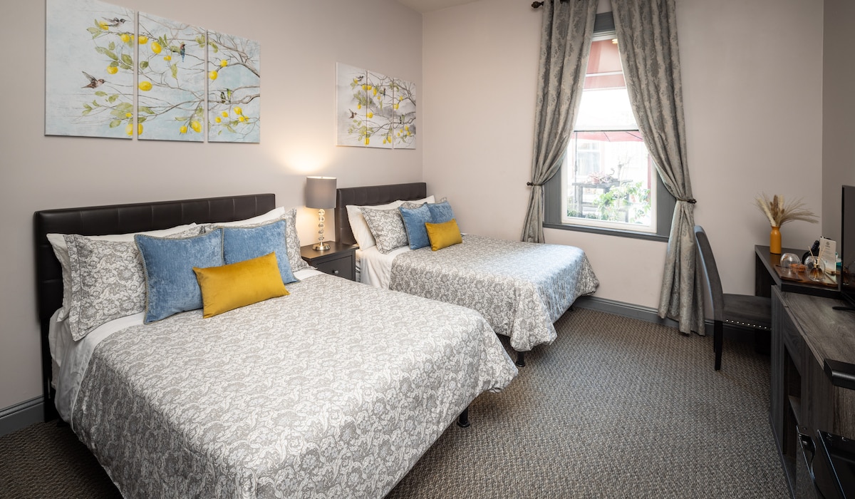 Kamar yang ditunjuk dengan indah ini terbuka ke halaman kami yang dipenuhi bunga 🌸 dan memiliki dua tempat tidur ganda ekstra panjang 🛏️🛏️ (queen - length). Terletak di sebuah motel kecil yang dikelola keluarga di Marina District, dekat toko dan restoran 🏙️ Cow Hollow dan Chestnut Street. Nikmati lingkungan tinggal yang bisa ditempuh dengan berjalan kaki dan menginap dengan nyaman. Parkir 🚗 gratis sesuai ketersediaan - periksa dengan resepsionis. 🐾 Tidak ramah hewan peliharaan. Hunian 👥 maksimum: 4 tamu. Kami menantikan kedatangan Anda! 😊