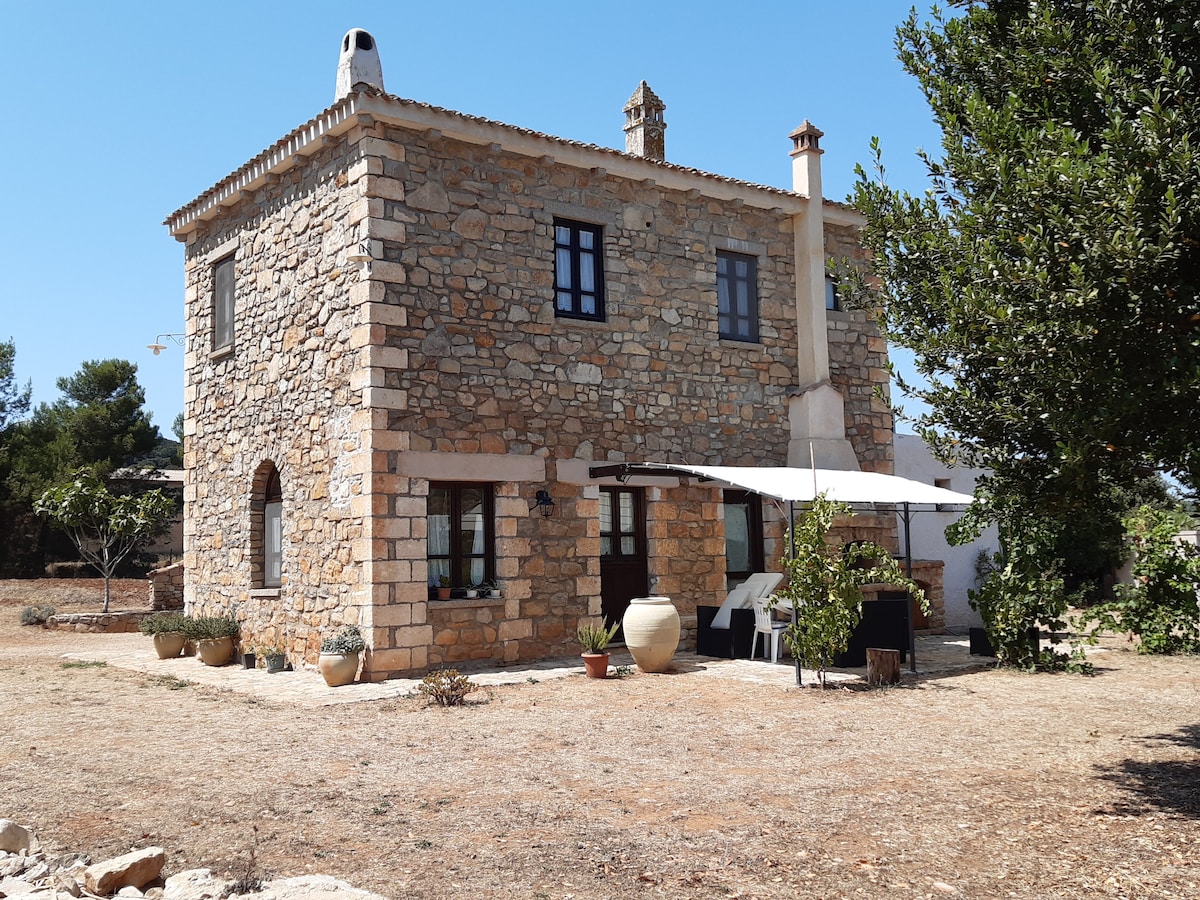 rumah pertanian, rumah pedesaan dari batu yang terletak beberapa km dari laut