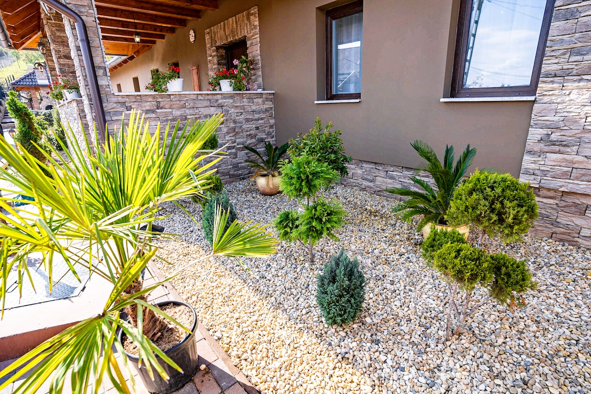 Guesthouse biru dan putih kami terletak di lereng bukit di tepi hutan. Sangat cocok untuk pasangan, keluarga, sekelompok teman, bersantai dan mengisi ulang energi dari air hangat bak mandi di teras, menyaksikan panorama, hujan salju, bintang - bintang di malam hari, atau pohon buah - buahan yang berbunga di taman. Hutan berjarak beberapa langkah, ada banyak keingintahuan di dekatnya (informasi lebih lanjut dalam rekomendasi program kami). Perbukitan Mátra sangat indah di semua musim! Mátranovák adalah desa kecil yang bagus, ada baiknya Anda datang kepada kami!