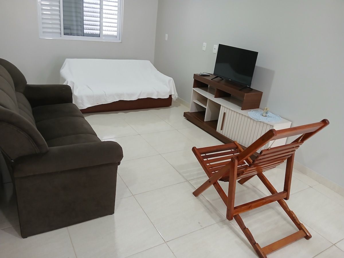 Menginap di gedung yang berlokasi strategis, hanya 4 menit dari pusat kota, dengan 2 kamar tidur dengan tempat tidur double, ruang tamu, dapur lengkap, kamar mandi, ruang cuci, dan garasi tertutup. Tarif harian adalah R$250,00 untuk dua tamu, dan ada opsi untuk dua tamu lagi (dengan biaya tambahan R$100,00 per tamu tambahan). Di dalam rumah Anda akan menemukan peralatan dapur, seprai, selimut dan handuk.