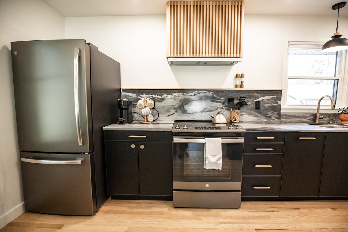 Cahaya terisi dan meringkuk di pepohonan dewasa di lingkungan Maplewood. Rumah bata satu lantai ini berlokasi di pusat kota; dekat dengan Uptown dan Downtown, kampus isu dan IWU dan kurang dari 10 menit dari Rivian dan State Farm. Baru direnovasi dan dirancang dengan estetika modern, tamu kami datang untuk menjelajahi Bloomington/Normal tetapi memberi tahu kami bahwa mereka sama senangnya menghabiskan waktu dan bersantai di Modern Ranch kami. Pengisi daya kendaraan listrik yang baru dipasang tersedia selama Anda menginap!