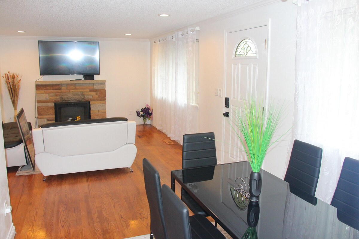 Ini adalah rumah baru yang direnovasi, setengah dari dupleks. Terang dengan warna - warna segar untuk membuat Anda merasa seperti di rumah sendiri di lingkungan tinggal kami di Burien. Kami terletak di sebelah barat bandara sekitar tujuh menit menuju suara Puget. Kami berjalan kaki yang menyenangkan ke Pantai Seahurst atau berkendara singkat. Semua perlengkapan dasar disediakan di dapur, kamar mandi, dan kamar tidur untuk membantu Anda merasa seperti di rumah sendiri di rumah kecil kami yang lucu. Rumah ini memiliki pompa panas split mini yang menyediakan AC seluruh rumah