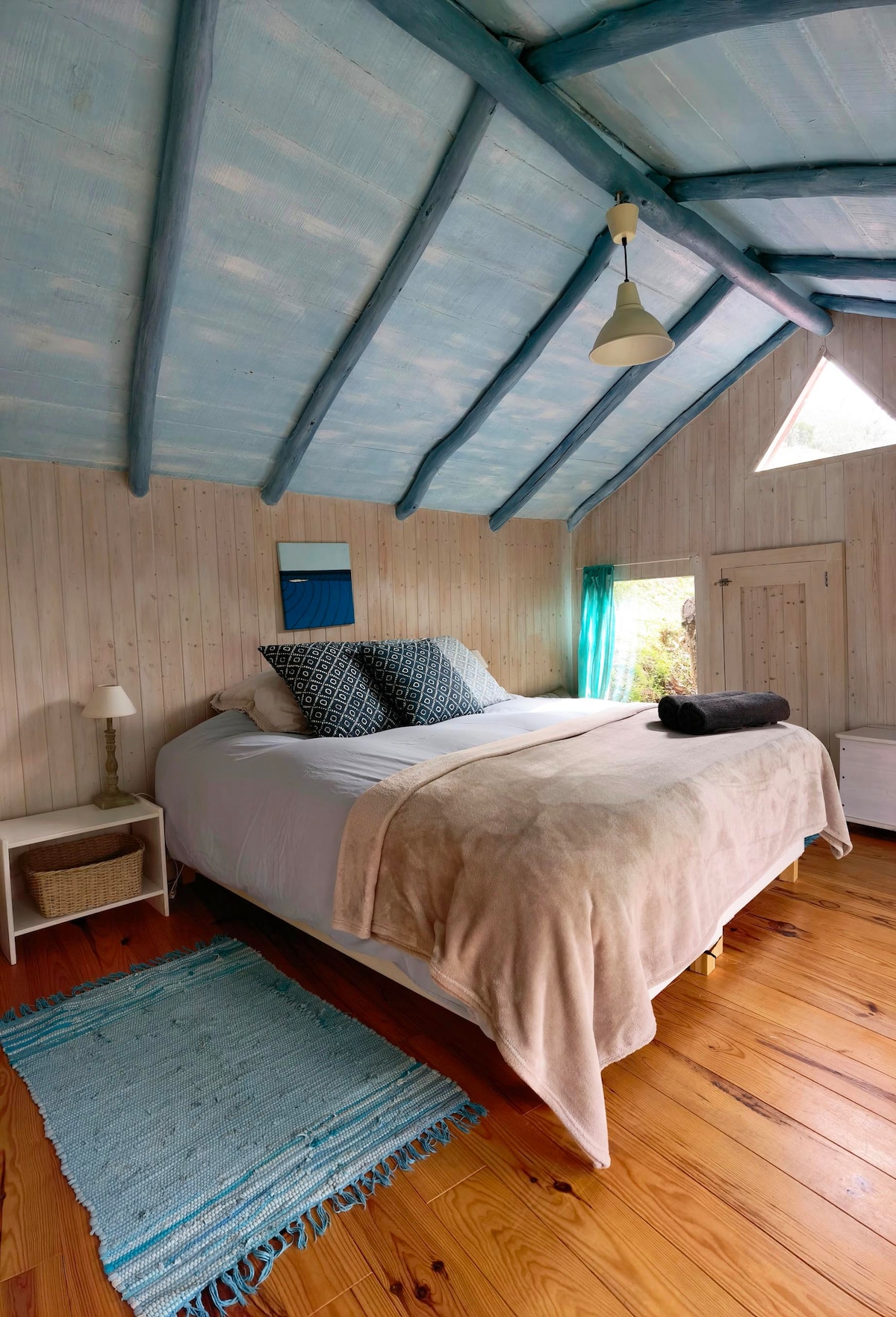Dua rumah kayu ini terletak di lingkungan gabus dan kayu putih yang tenang. Anda akan dihargai dengan tanah hijau. Udaranya harum dengan pepohonan. Begitu Anda tiba, "600 meter terakhir berada di jalan yang tidak beraspal, khas untuk pedesaan Algarve, mudah diakses dengan mobil biasa dan bagian dari pengalaman hidup lambat boho" Anda bisa berenang di kolam biru atau membaca buku di teras Anda. Sedamai yang bisa Anda harapkan, namun mudah dijangkau dari pantai yang indah.