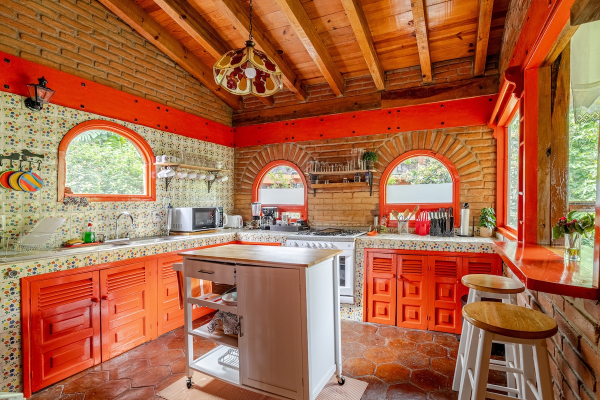 Kemewahan pedesaan + keindahan alam yang menakjubkan. Tanaman tropis dan pohon buah mengelilingi Villa yang benar-benar unik ini yang menghadap teluk renang pribadi, tempat tebing setinggi 70 kaki menjunam ke air jernih dan membingkai pemandangan gunung berapi yang spektakuler. Nikmati uap di sauna, mendayung SUP/kayak, berendam di bak mandi luar ruangan, atau piknik pizza oven bata. Ruang luar ruangan berlimpah untuk berjemur, bersantai, bersantap di luar ruangan, dan menikmati pemandangan yang luar biasa. Nikmati kehidupan Danau Atitlan yang terbaik. Tersedia koki pribadi.