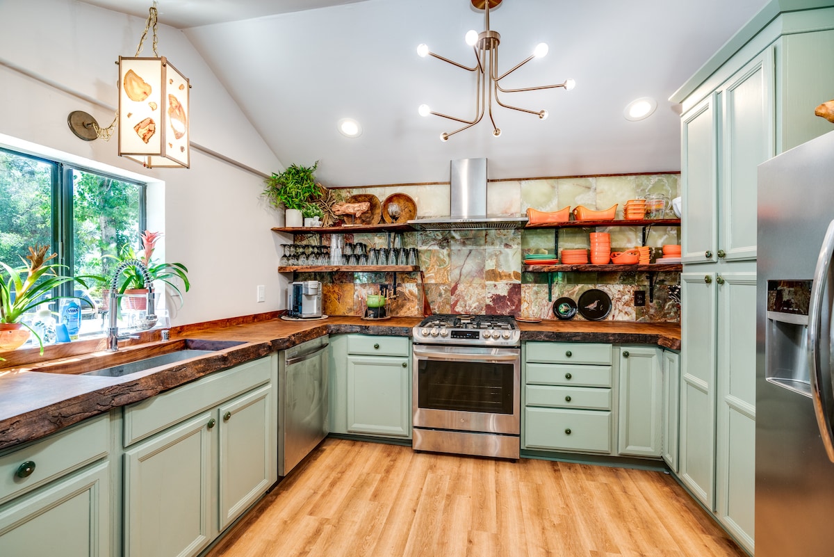 Welcome to the Olive Inn, a beautifully restored Victorian home built in 1898. You're just a short walk from the vibrancy of Old Town and Downtown Auburn! Start your day with locally roasted coffee in a fully equipped kitchen. Relax in comfortable rooms with modern amenities. Work remotely in a dedicated office with high-speed internet. Escape to the lush tiki garden, with a tropical aquarium, BBQ, and cooling misters.