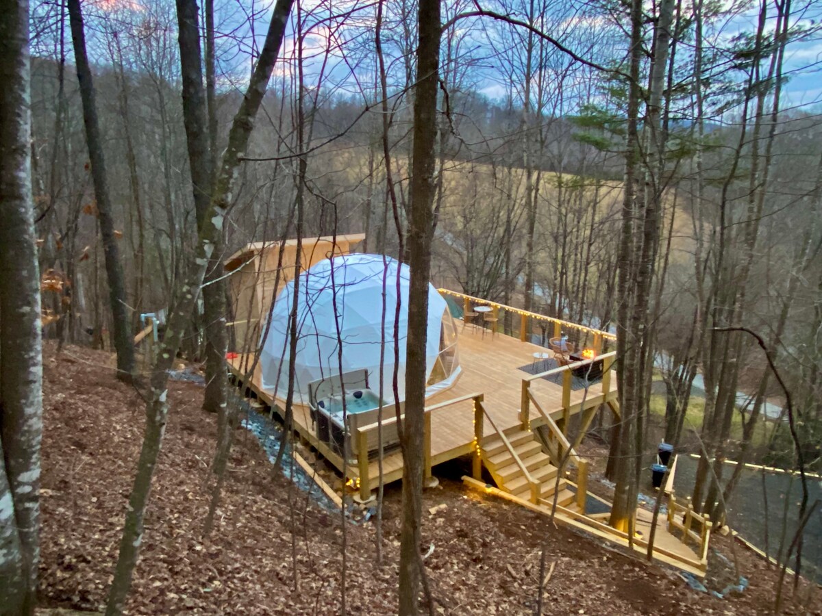 Asheville Dome Sleeps 6 + Bak Mandi Air Panas + Pemandangan Gunung