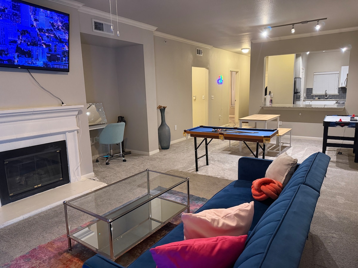 Anda akan dekat dengan segala sesuatu di gedung pencakar langit mewah yang berlokasi di pusat kota ini. 2BR 2BA mewah ini terletak di pusat Victory Park, akomodasi terdekat dengan American Airlines Center, rumah Mavericks, Stars, serta konser dan acara. Dilengkapi dengan 2 tempat tidur King dan kasur lantai twin untuk hingga 5 orang. Ada pemandangan jendela dari lantai ke langit - langit, kolam renang atap, cabana, pusat kebugaran lantai 20 dengan pemandangan dan banyak lagi fasilitas seperti resor.
