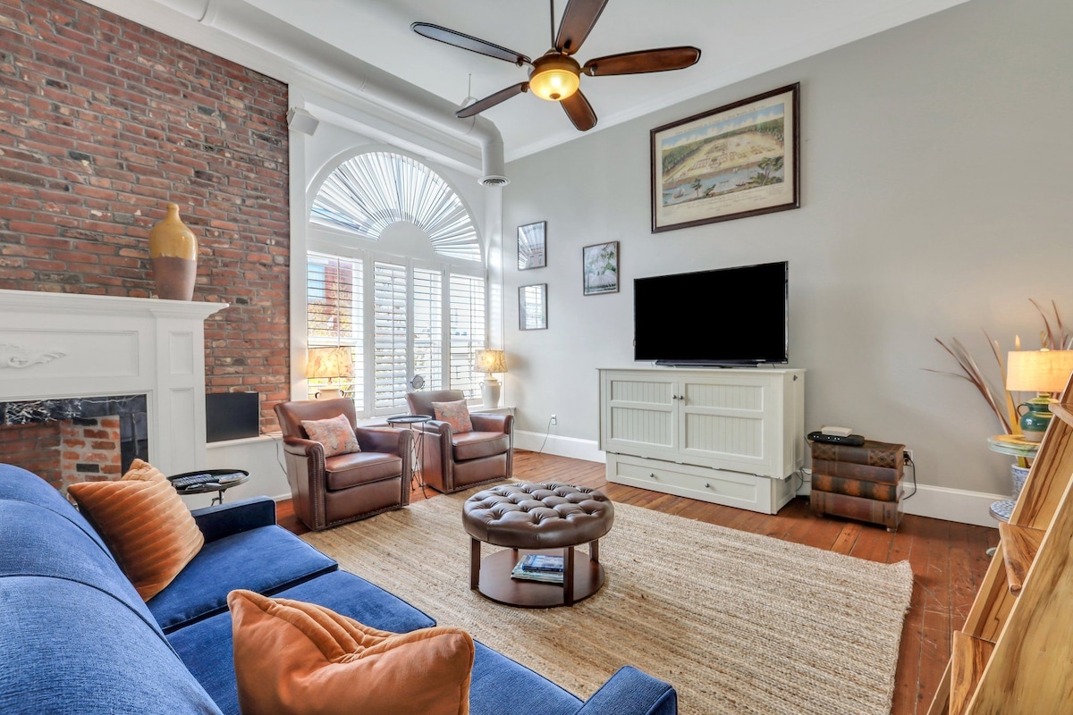Tree Top - Tempat Tinggal Anda di Forsyth Park dengan Tempat Tidur King Parkir Off - Street, Berjalanlah ke mana - mana Hampir tidak sepelemparan batu dari Forsyth Park, Tree Top at The Suites at Forsyth akan menetapkan standar untuk pengalaman sewa liburan Anda di Savannah. Dipugar dengan gaya Savannah klasik, Anda akan jatuh hati dengan townhouse tahun 1870 ini. Salah satu dari tiga unit di gedung ini, Tree Top terletak di lantai atas. Sertifikat Sewa Liburan Jangka Pendek Kota Savannah SVR -00407