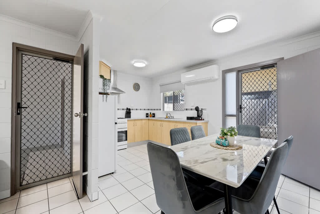 Keep it simple at this peaceful and centrally located home on the main street of North Mackay. Step out the gate to the beautiful Gooseponds walk, which will take you past a skate park, exercise stations, playgrounds and the community pool , Taverns 500m either way from the front door, convenience/takeaway store across the street. It's all there. The home is fully equipped with a cleared clean space for you to enjoy. Relax on the back deck lounge or enjoy dinner outside on the bar style setting.