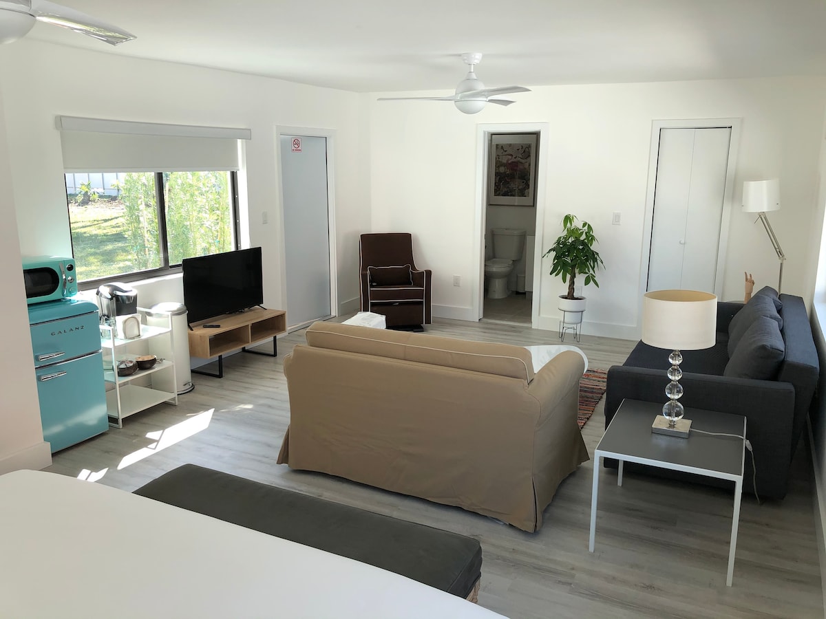 Unit studio yang cerah, besar, dan telah direnovasi sepenuhnya di jantung Miami Utara, hanya 4,5 mil dari pantai Bal Harbour yang indah. Daerah yang berlokasi di kawasan seni di kota ini dengan tempat makan dan hiburan. Tempat ini dilengkapi perabotan yang sempurna dengan tempat tidur king size dan tempat tidur sofa queen yang nyaman menampung 2 orang. Studio ini memiliki pintu masuk pribadinya sendiri dan tamu dapat menikmati ruang luar dengan kolam renang baru, area duduk, dan taman yang luas dan indah. Tidak ada dapur/kompor.