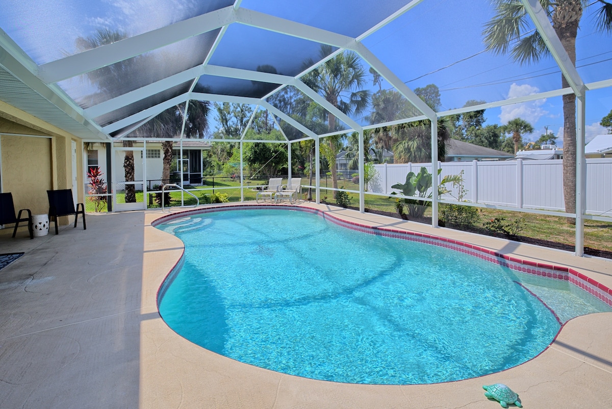 Berliburlah ke rumah liburan yang tenang ini dengan kolam renang pribadi di lingkungan yang tenang. Baru direnovasi dengan 3 smart TV , ruang kerja khusus, dapur lengkap, dan seprai bersih. Mudah 6,5 mil ke pantai Englewood yang indah, menawarkan restoran dan toko bertema pantai, dan penyewaan olahraga air. Banyak lapangan golf umum berada di dekatnya. Setelah seharian bersenang - senang dan berjemur, Anda akan memiliki ruang sendiri untuk memanggang dan bersantai di tepi kolam renang. Sistem air full house, dengan reverse osmosis.