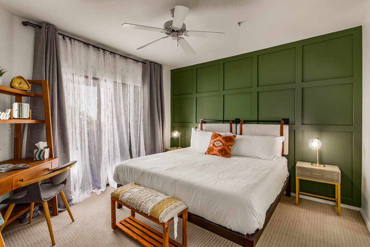 Tempat: Selamat datang di Palm Paradise, tempat peristirahatan Anda di pusat Kota Tua Scottsdale. Kondominium yang direnovasi pada Oktober 2024 ini memadukan desain gurun-boho yang bergaya dengan segala kenyamanan rumah, menciptakan ruang yang indah dan fungsional. Bersantai di sofa korduroi hijau yang nyaman, cocok untuk tidur siang, atau melangkah keluar ke balkon pribadi untuk menyaksikan pemandangan matahari terbenam yang spektakuler di atas Camelback Mountain. Masuklah ke kamar tidur yang tenang dengan tempat tidur berukuran king dan seprai berkualitas tinggi.