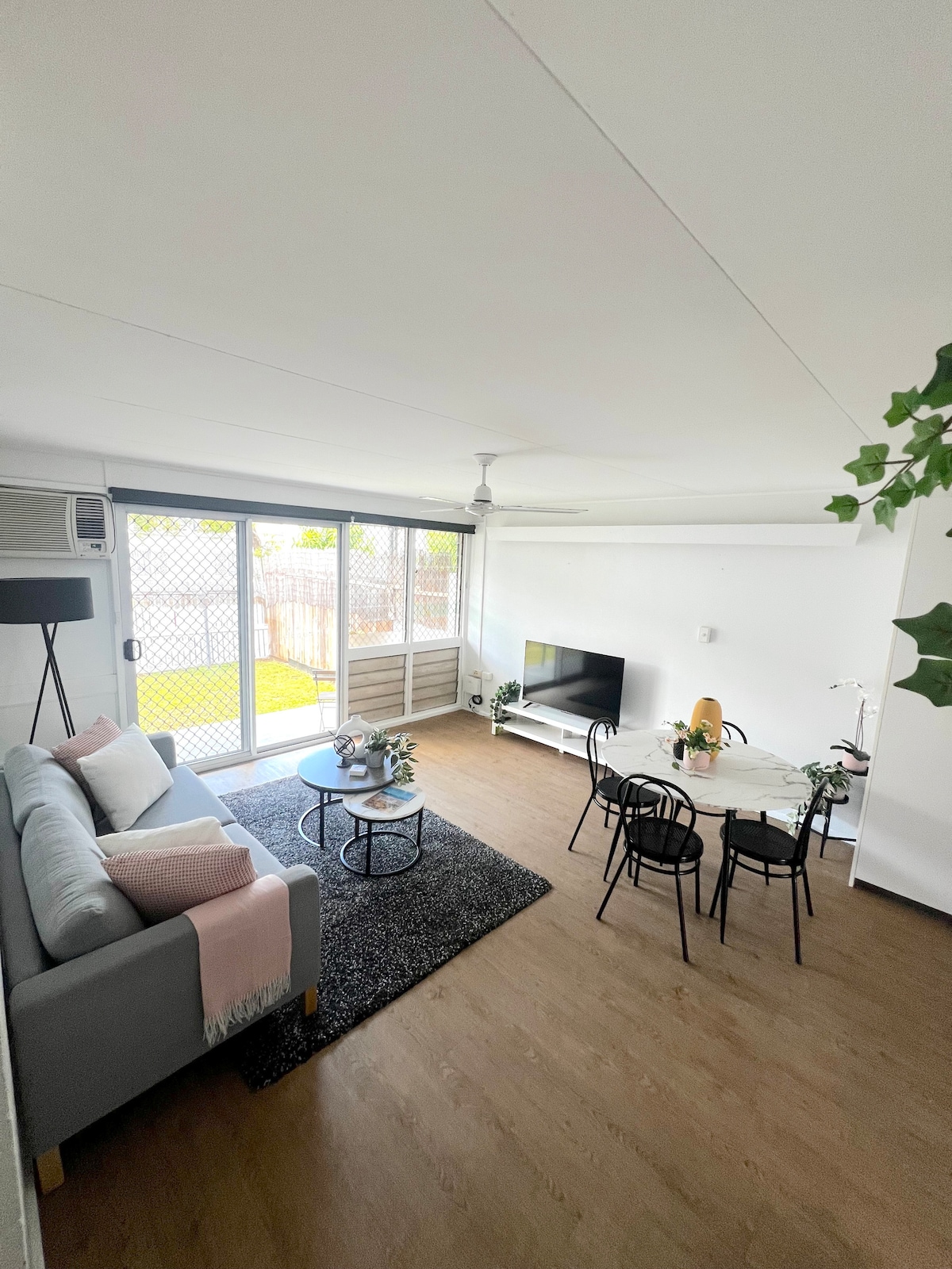 Tropical Retreat! Escape the Townsville "Build-Up" and humidity! Our fully air-conditioned 2BR/1BA Hyde Park retreat is your essential tropical sanctuary. Perfectly configured for a couple or small family, you'll love the blackout blinds for restful sleep, a Nespresso-stocked kitchen for your morning boost, and the cool, private outdoor space. Located near Castletown shops and a short drive to The Strand's beaches. Book your climate-controlled getaway now before the high-demand summer rush!