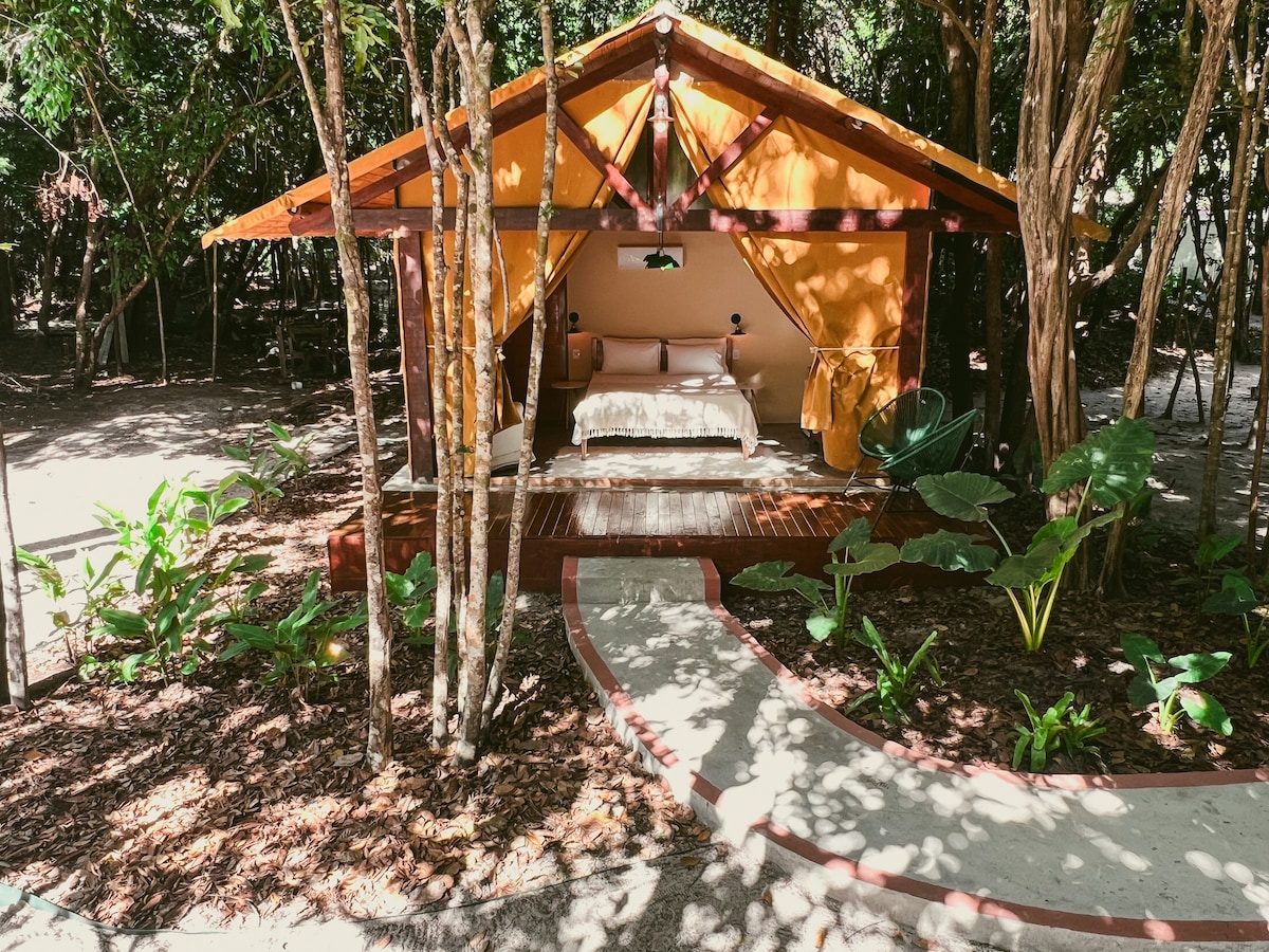 Inserido em 3.000 m² de mata preservada, a tenda oferece uma experiência imersiva com natureza, silêncio e privacidade. A unidade possui 25 m², banheiro privativo e ampla varanda voltada para o verde. A propriedade conta com piscina, iluminação noturna e área 100% cercad e segura. Localizado a 30 metros do Café do Camurim, combina isolamento natural com acesso imediato à melhor gastronomia de Pipa. Ideal para casais que buscam conforto e atmosfera única.